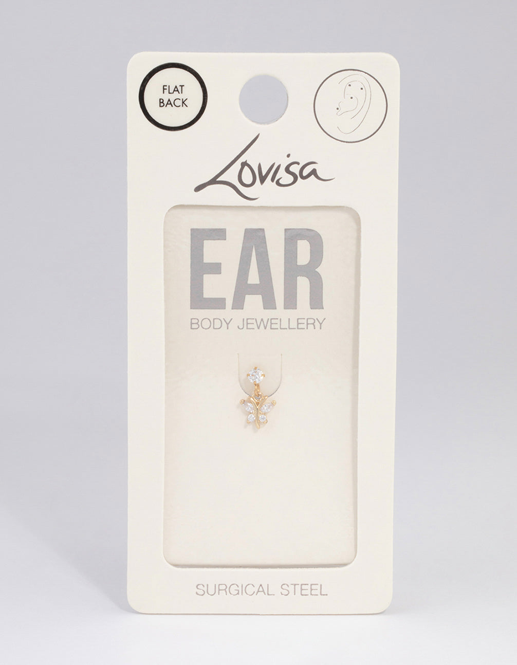 Gold Plated Surgical Steel Cubic Zirconia Butterfly Single Flat Back Gold Plated Surgical Steel Cubic Zirconia Butterfly Single Flat Back Gold Plated Surgical Steel Cubic Zirconia Butterfly Single Flat Back