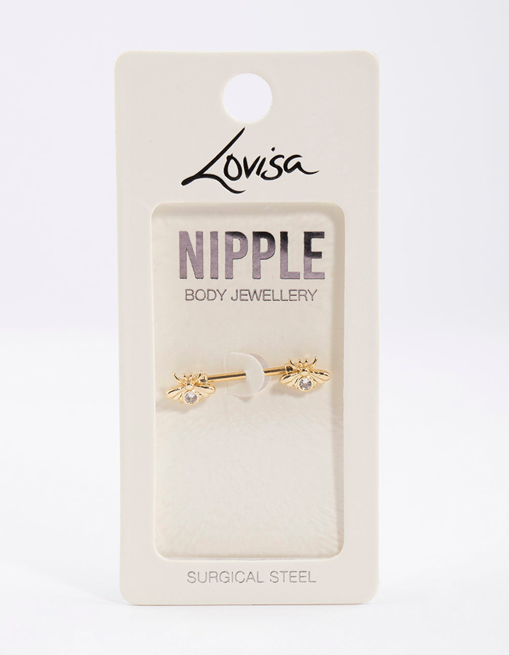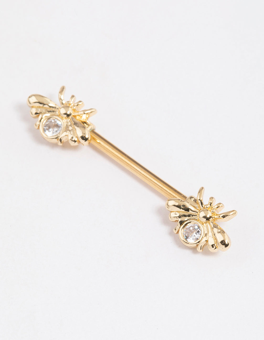 Gold Plated Surgical Steel Double Bee Nipple Piercing Gold Plated Surgical Steel Double Bee Nipple Piercing Gold Plated Surgical Steel Double Bee Nipple Piercing