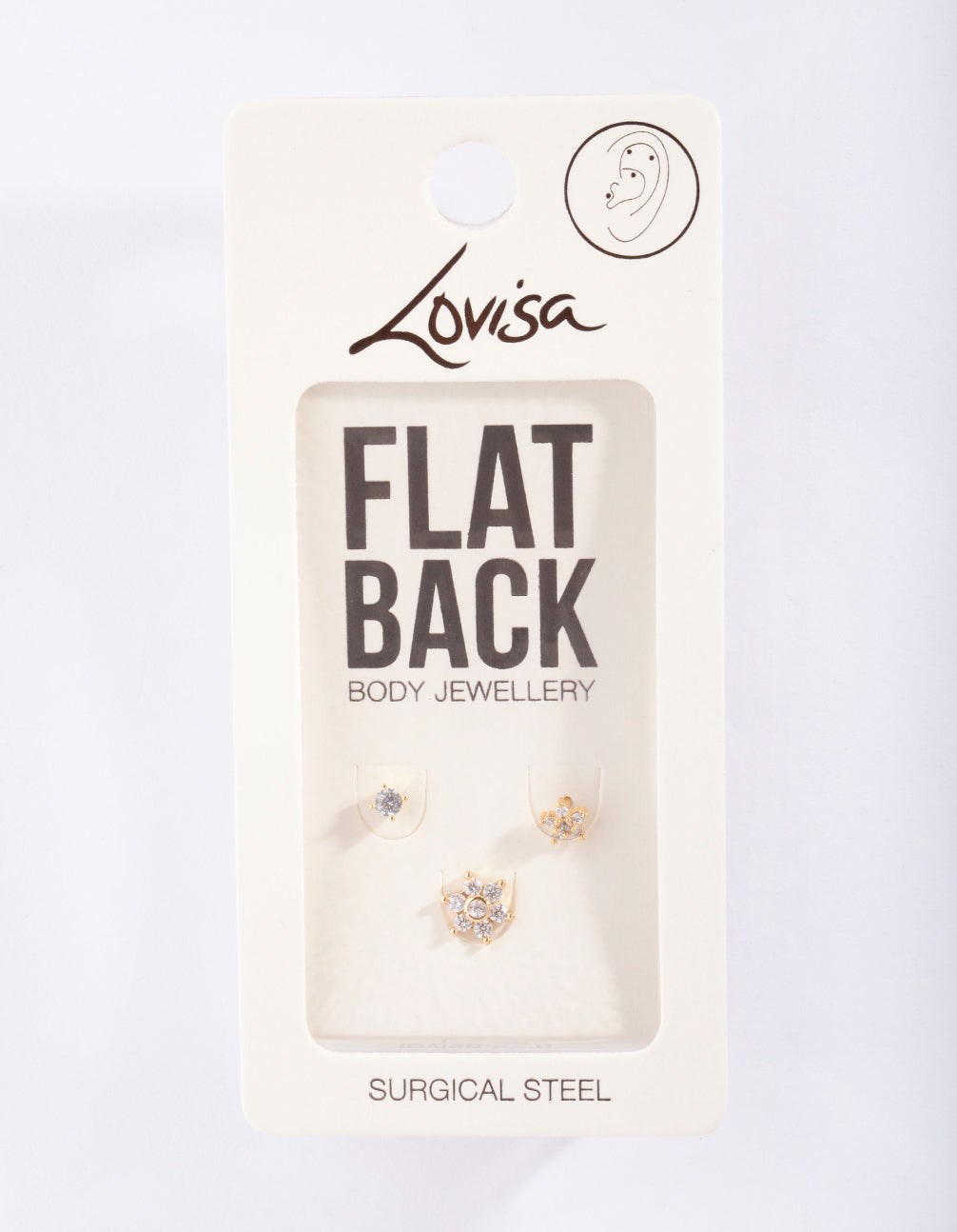 Gold Surgical Steel Fine Flower Flat Back Pack