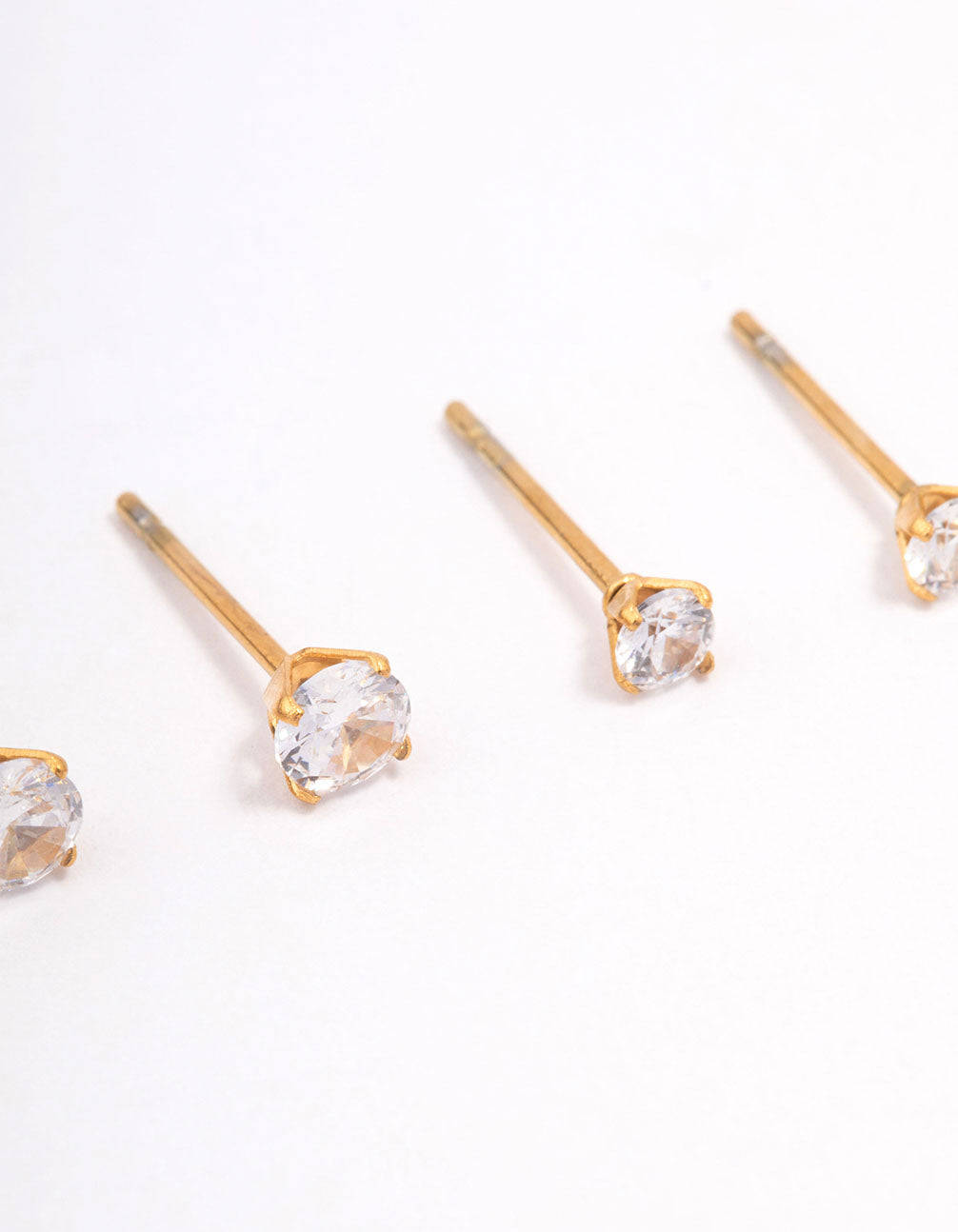 Gold Plated Surgical Steel Graduating Cubic Zirconia Stud Earring Pack