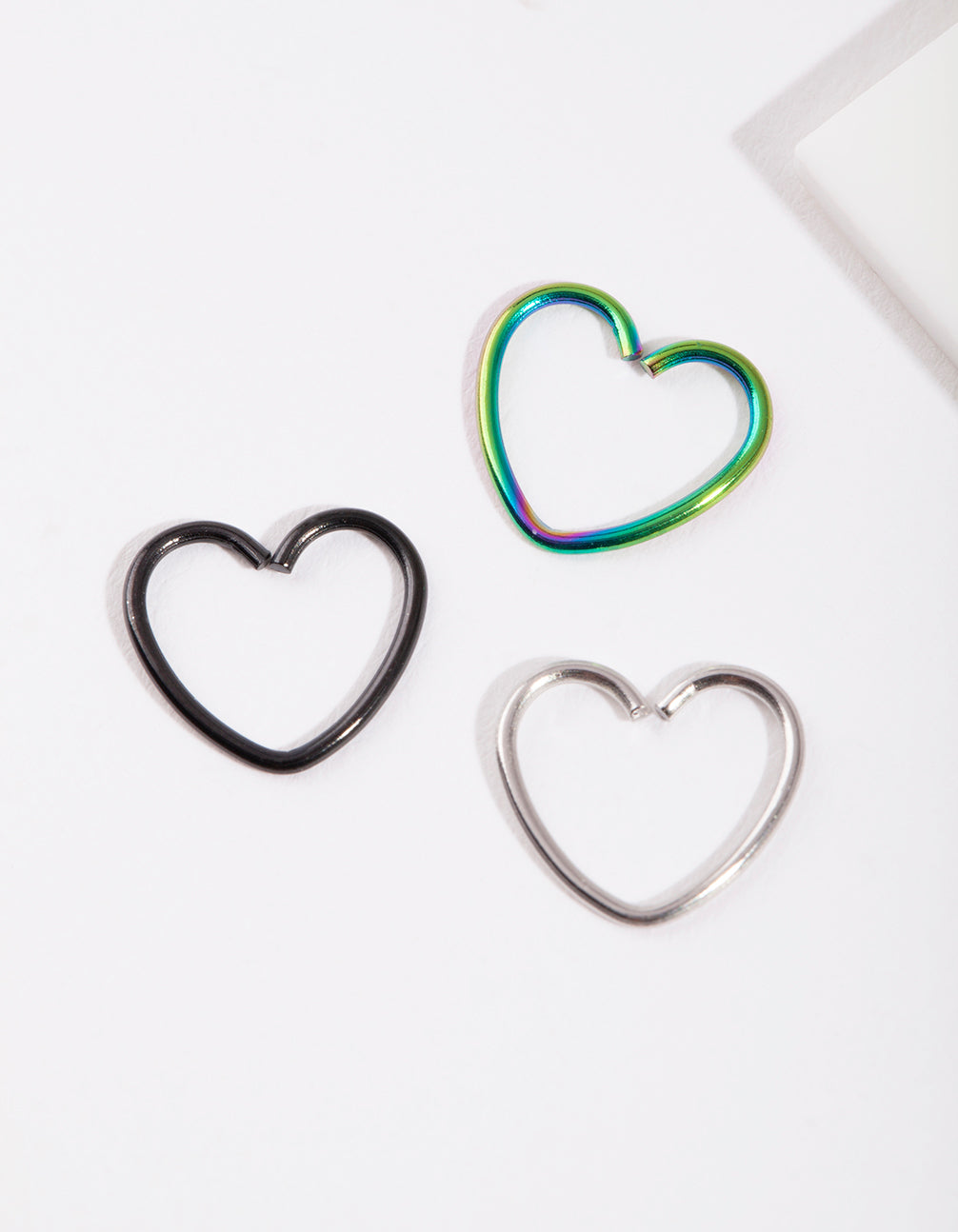 Lovisa body jewellery is made from surgical steel, making it perfect for daily wear. This pack comes with a trio of heart designs in mixed metal tones. These versatile designs can be worn in so many ways! Try them as a cartilage earring for your helix, conch or tragus; the options are endless. Wear the earring individually or stack multiple piercings with other mixed designs.