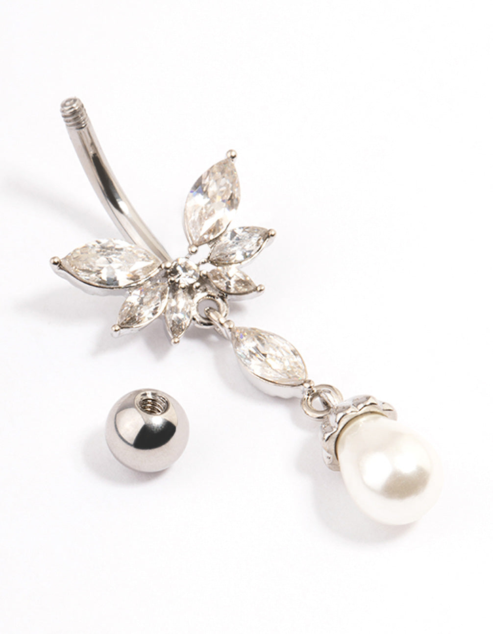Surgical Steel Crystal Pearl Drop Belly Ring