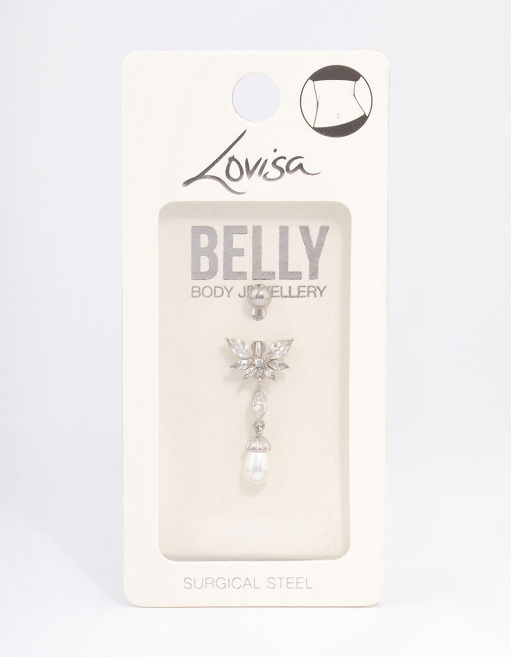 Surgical Steel Crystal Pearl Drop Belly Ring Surgical Steel Crystal Pearl Drop Belly Ring Surgical Steel Crystal Pearl Drop Belly Ring