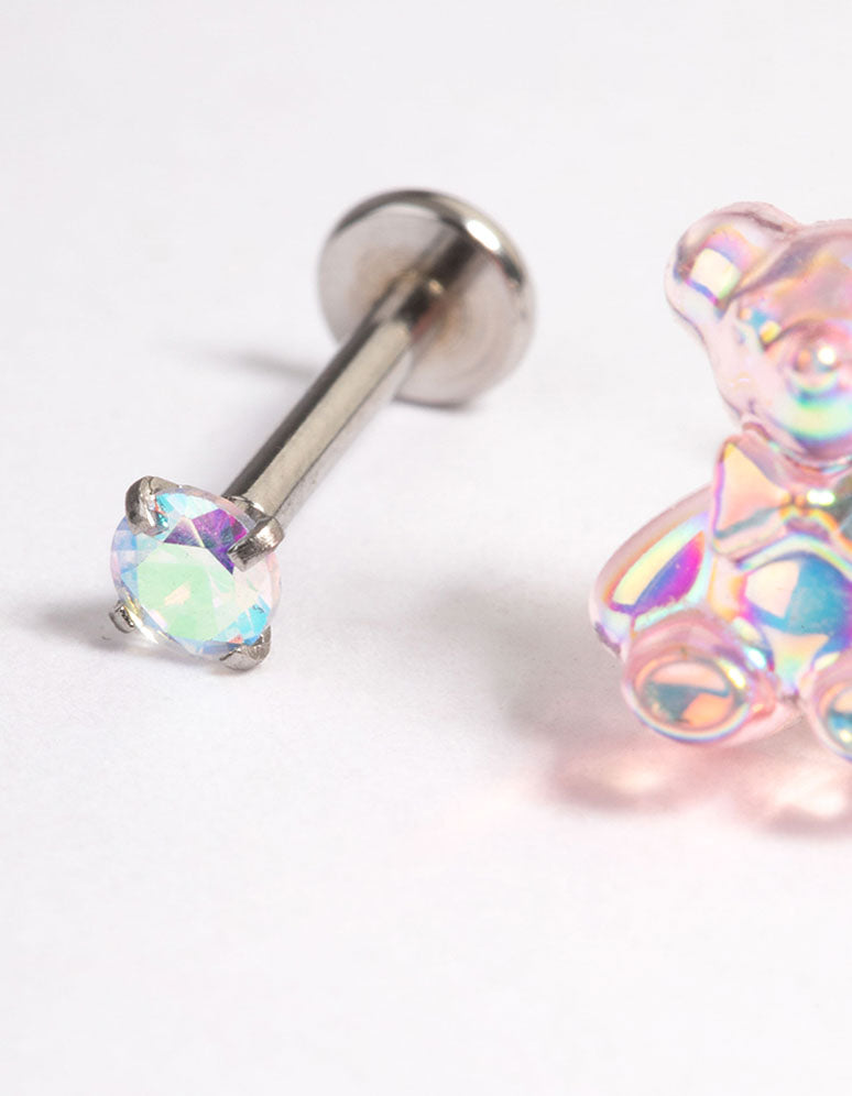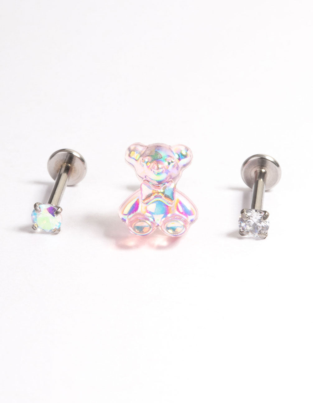 Surgical Steel Cubic Zirconia Bear Flat Back Pack