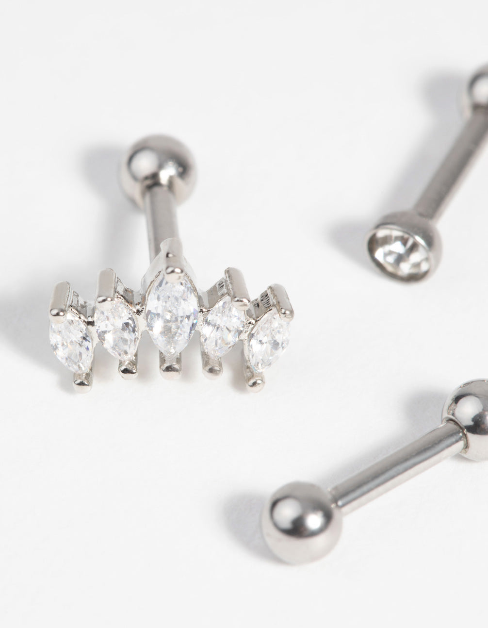 Express your individuality with Lovisa Body Jewellery! This barbell pack has been made with surgical steel, which makes it gentle on skin. These pieces feature smooth, spherical backs which make them more comfortable for daily wear in both lobe and cartilage piercings. This pack boasts cubic zirconia crystal embellishments for extra sparkle! They measure 16G/1.2mm.
