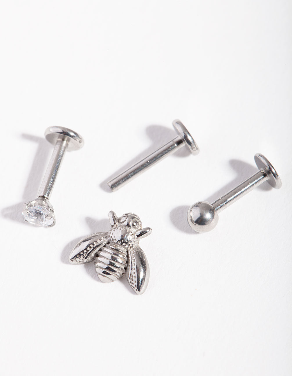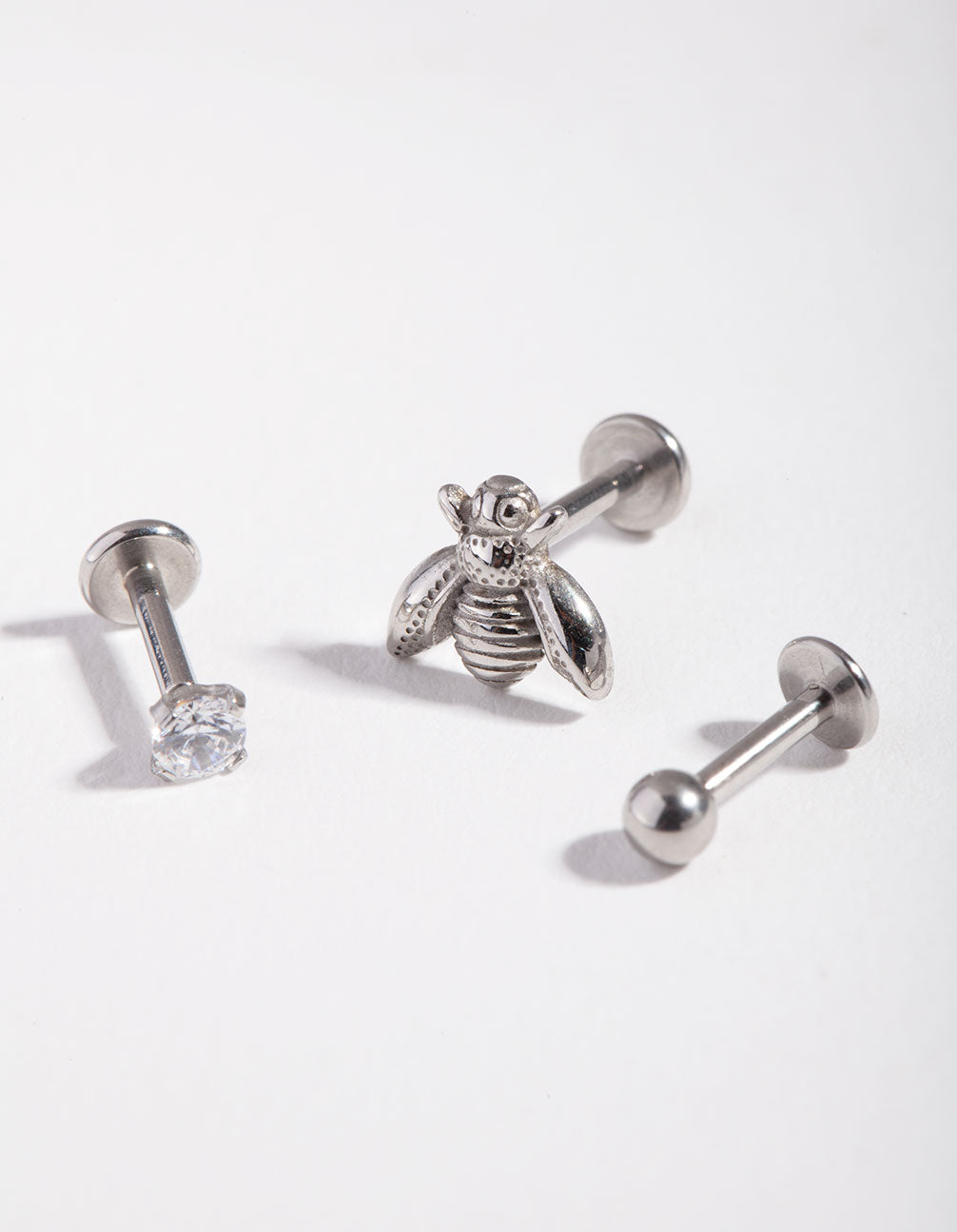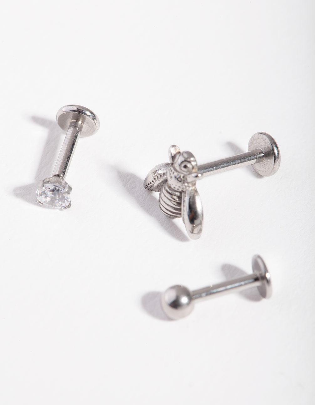 Add to your body jewellery collection with a flat back pack! This set includes three silver-toned flat backs that boast bee and diamante detailing. Lovisa body jewellery is made from surgical steel, so it's safe to wear and gentle enough for daily use. They have a gauge of 16 and are 1.2mm in length.