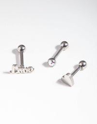 This versatile pack of barbel piercings contains three individual barbels designed with love motifs and diamantes for a stand-out finish.