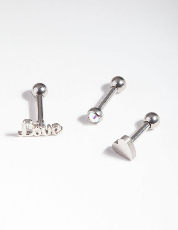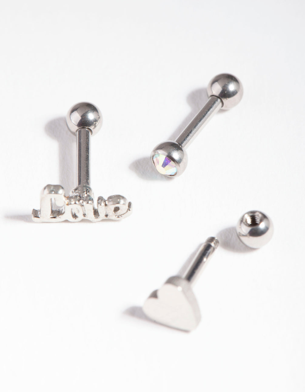 Surgical Steel Diamante Love Barbel Pack Surgical Steel Diamante Love Barbel Pack Surgical Steel Diamante Love Barbel Pack
