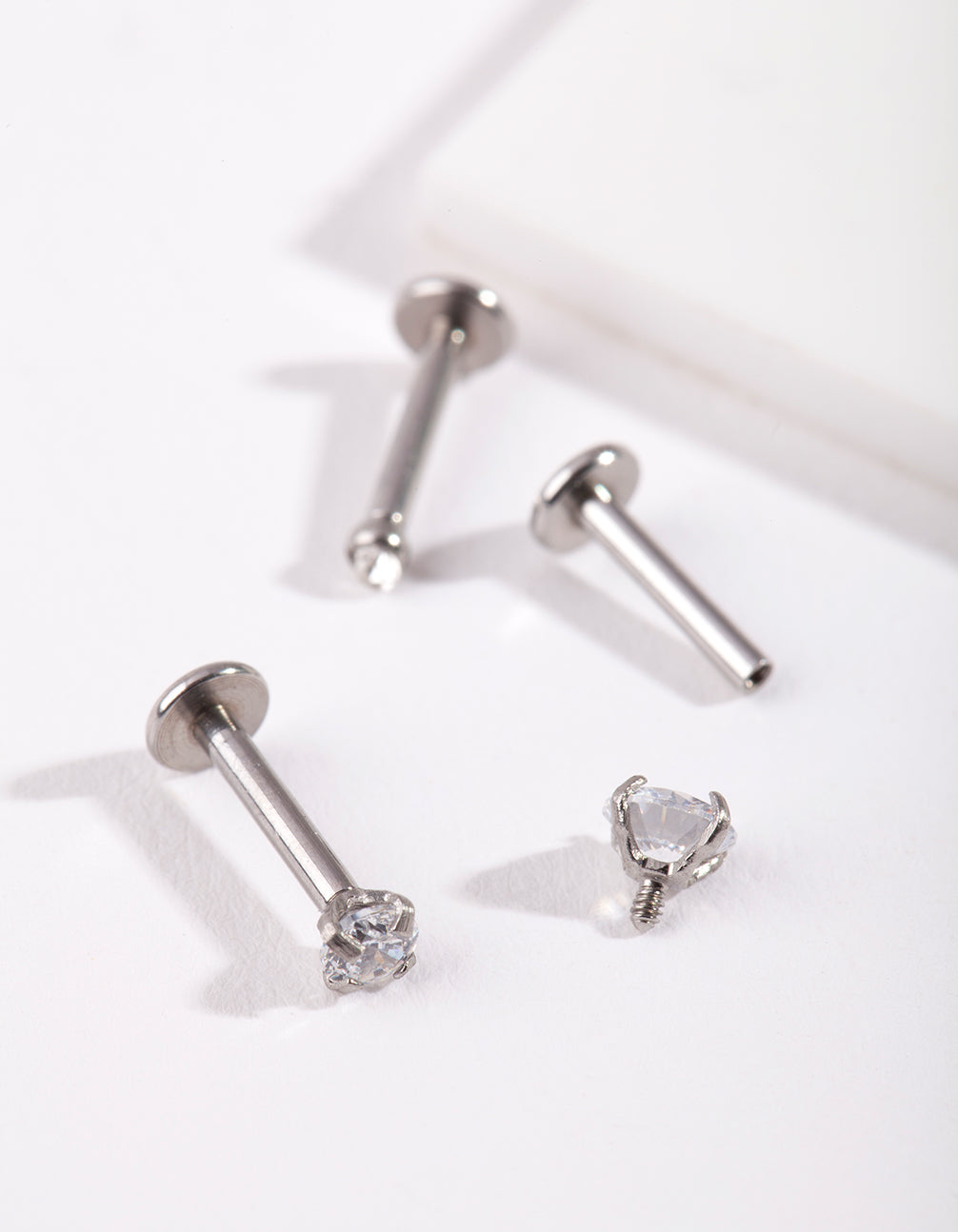 Elevate your ear stack with this flat back pack, featuring cubic zirconia stones in graduating sizes. This style is made from surgical steel, making it ideal for daily wear. Cartilage earrings look great as helix, conch and tragus piercings. Wear the earring on it's own or stack multiple piercings with other silver designs (eg. hoops, huggies, studs etc.)
