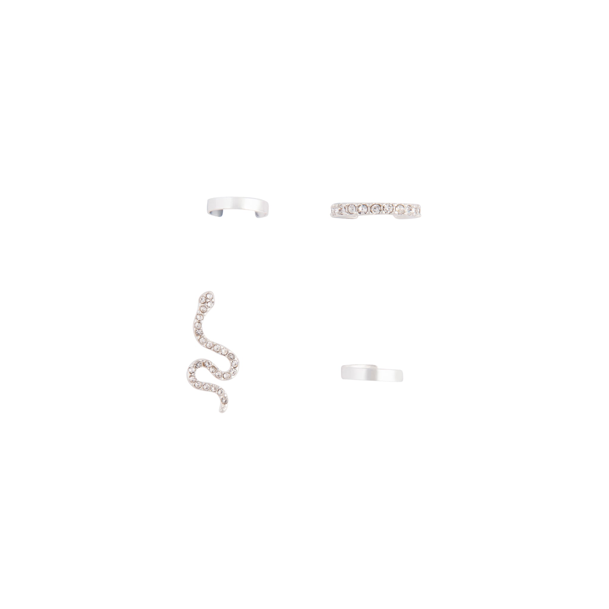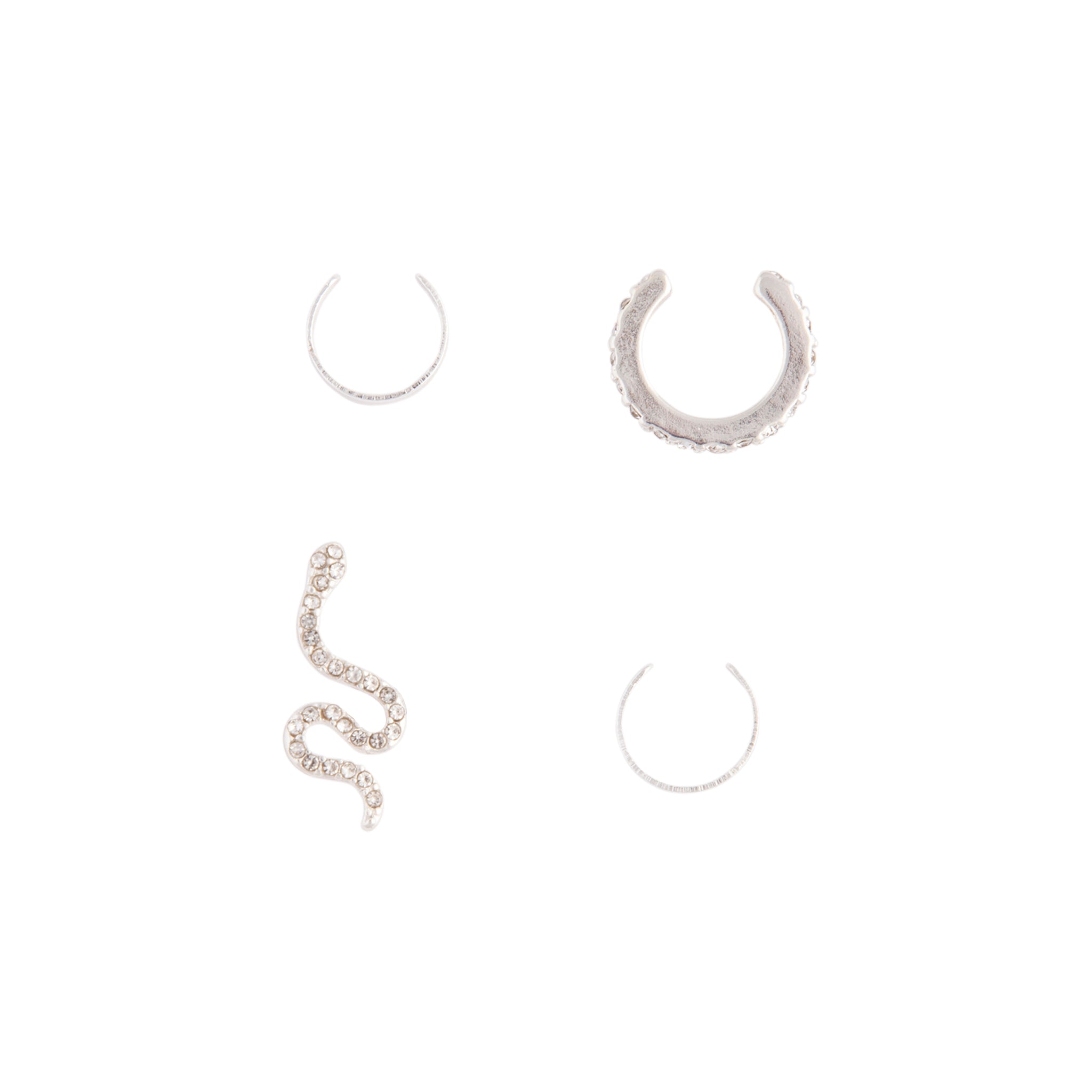Show off the individual you are with Lovisa body jewellery! This body jewellery pack includes a diamante-studded snake stud and three earring cuffs in a silver tone. Get stacking!