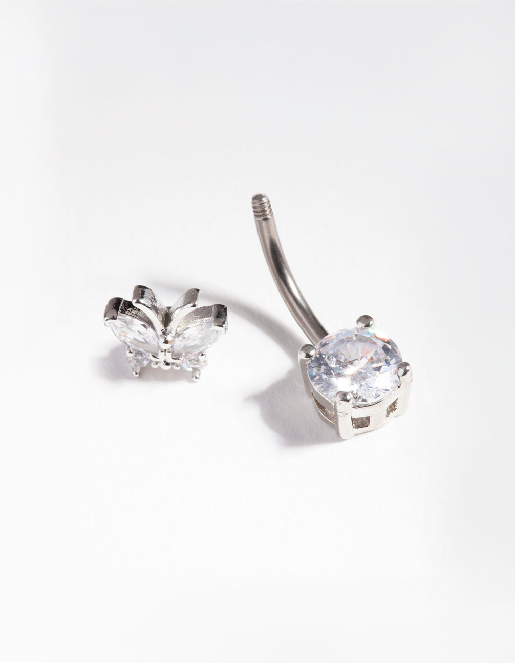 Gold Titanium Cubic Zirconia Butterfly Belly Bar