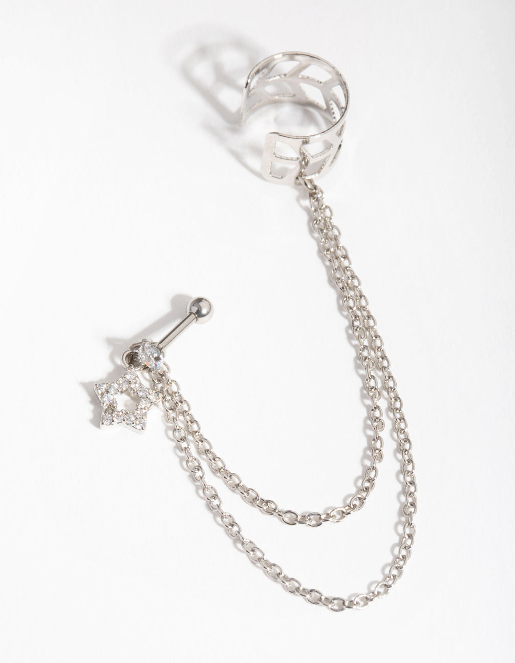 Round out your body jewellery collection with a fashion-forward barbell! This silver-toned piece is both a barbell and an ear cuff, embellished with a dainty, celestial star charm that is sure to boost your mood. It has a surgical steel post. This piece has a gauge of 16 and is 1.2mm in length.