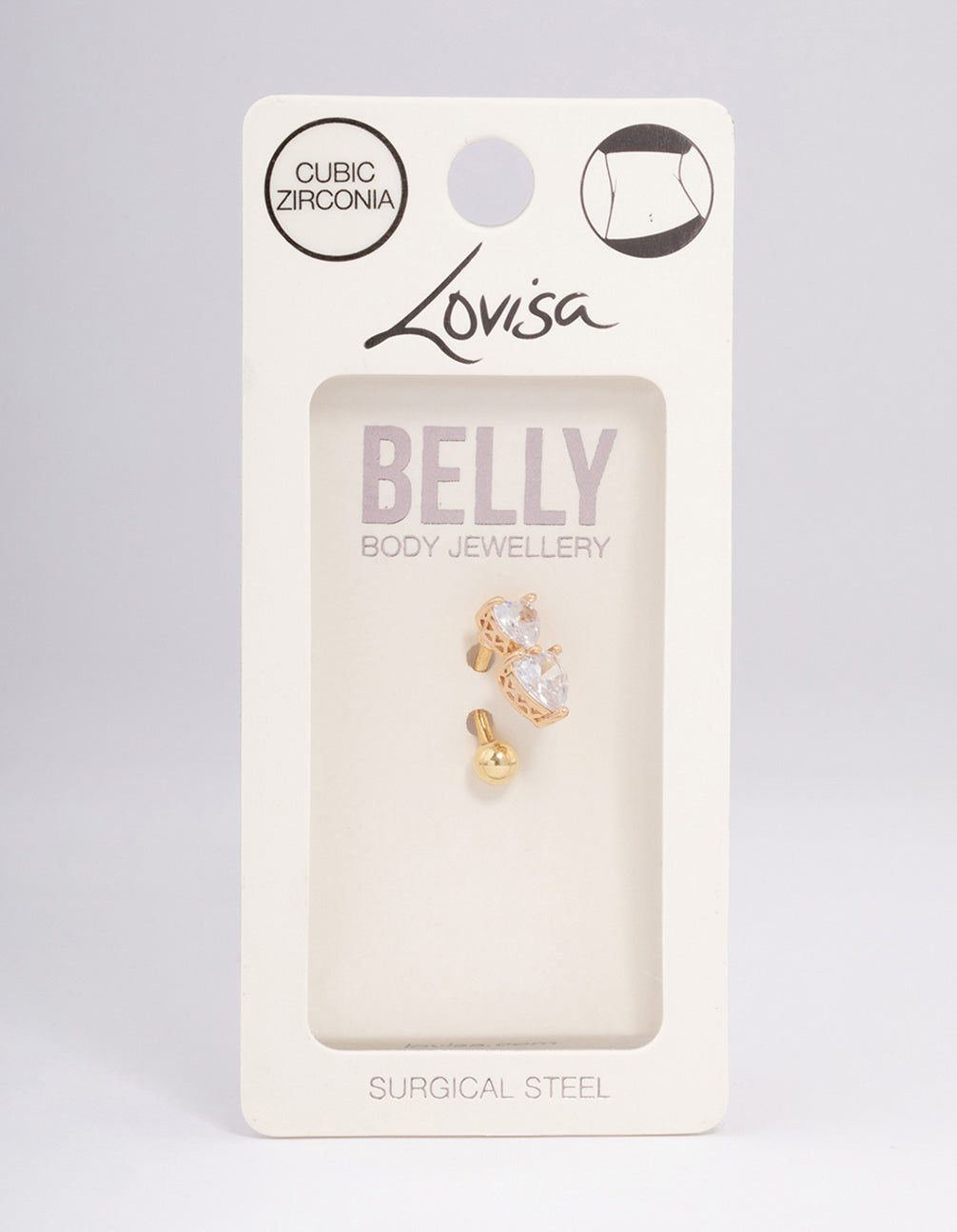 • Gold Plated Surgical Steel Cubic Zirconia Heart Stacked Belly Ring - link has visual effect only
