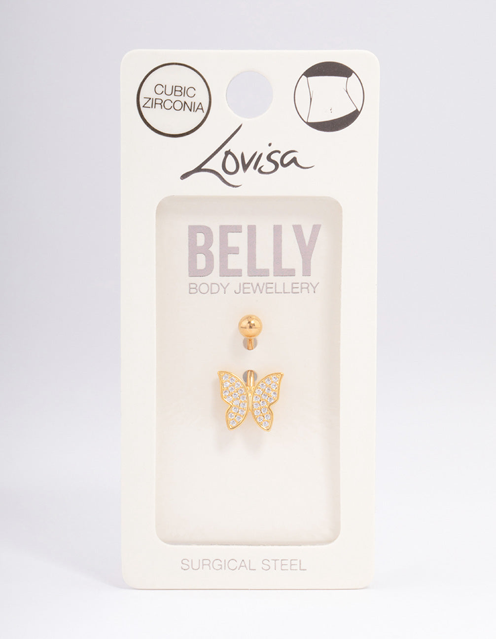 Gold Plated Surgical Steel Cubic Zirconia Statement Butterfly Belly Ring
