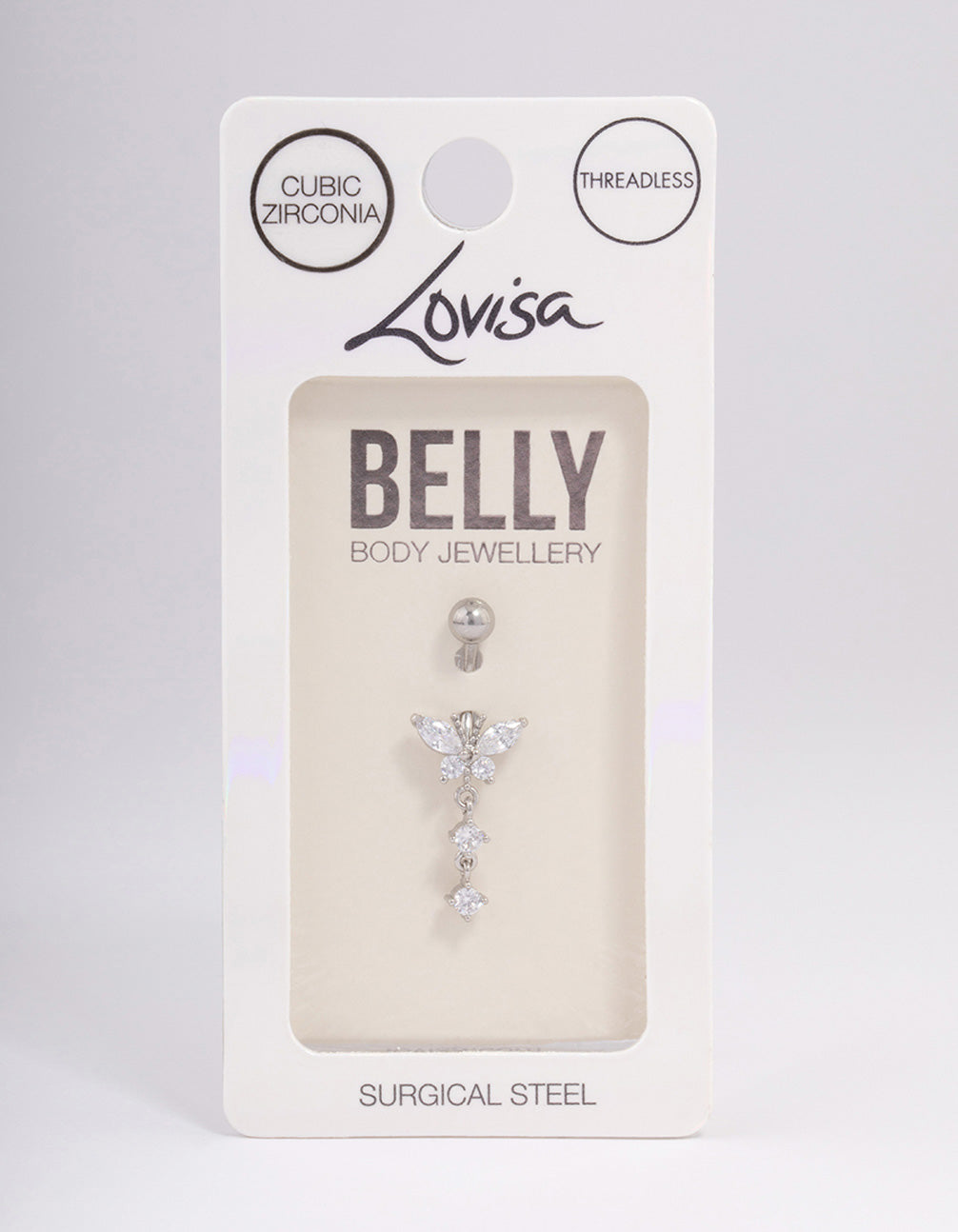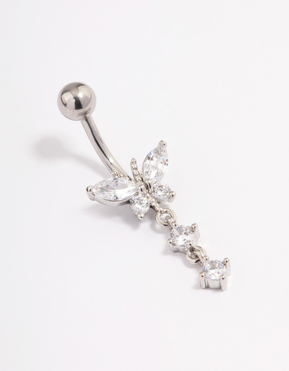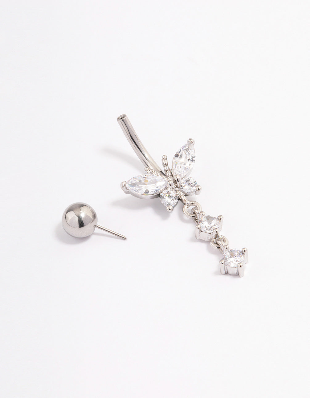 Surgical Steel Cubic Zirconia Butterfly Threadless Belly Bar