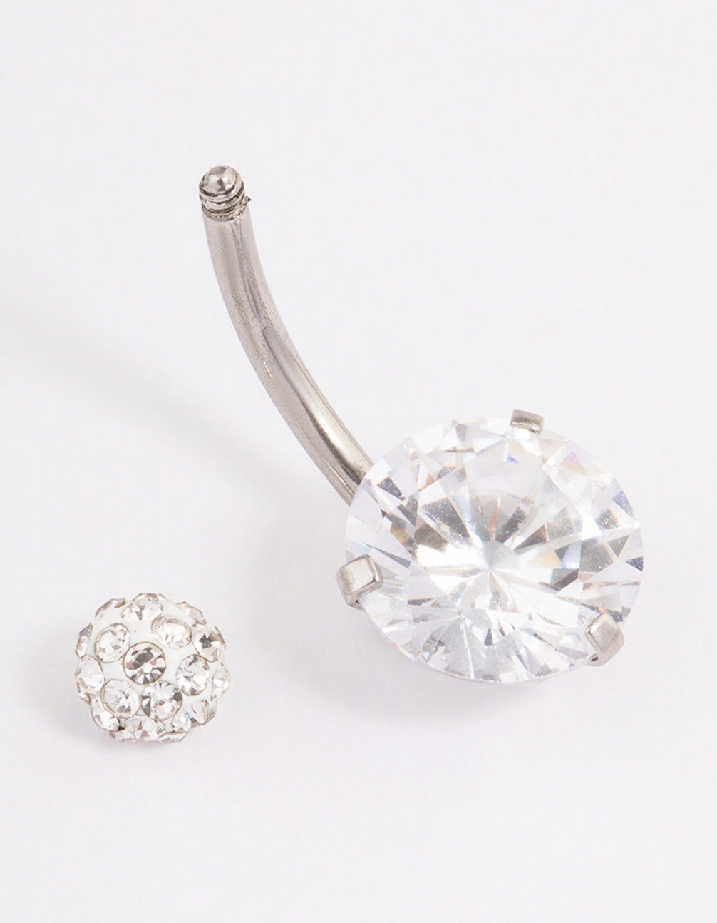 Surgical Steel Cubic Zirconia Round Claw Belly Ring