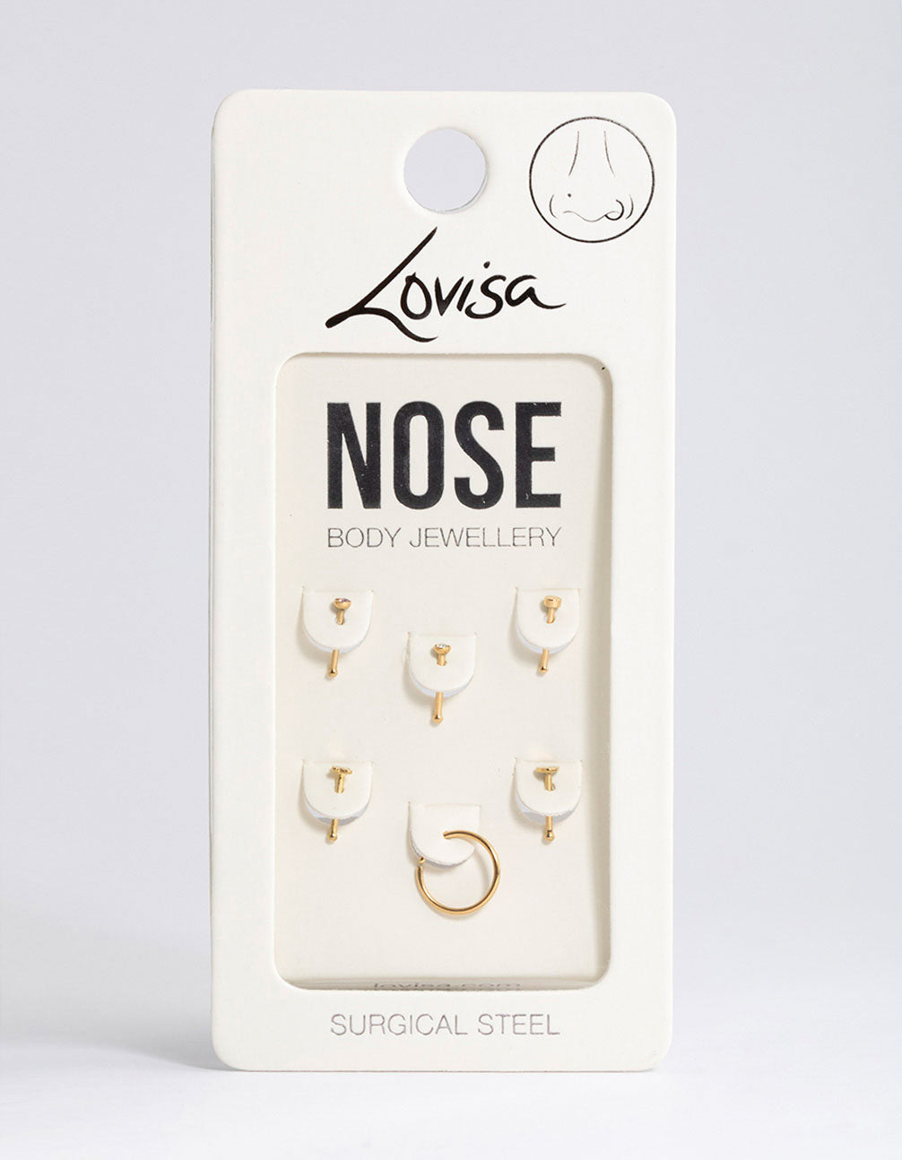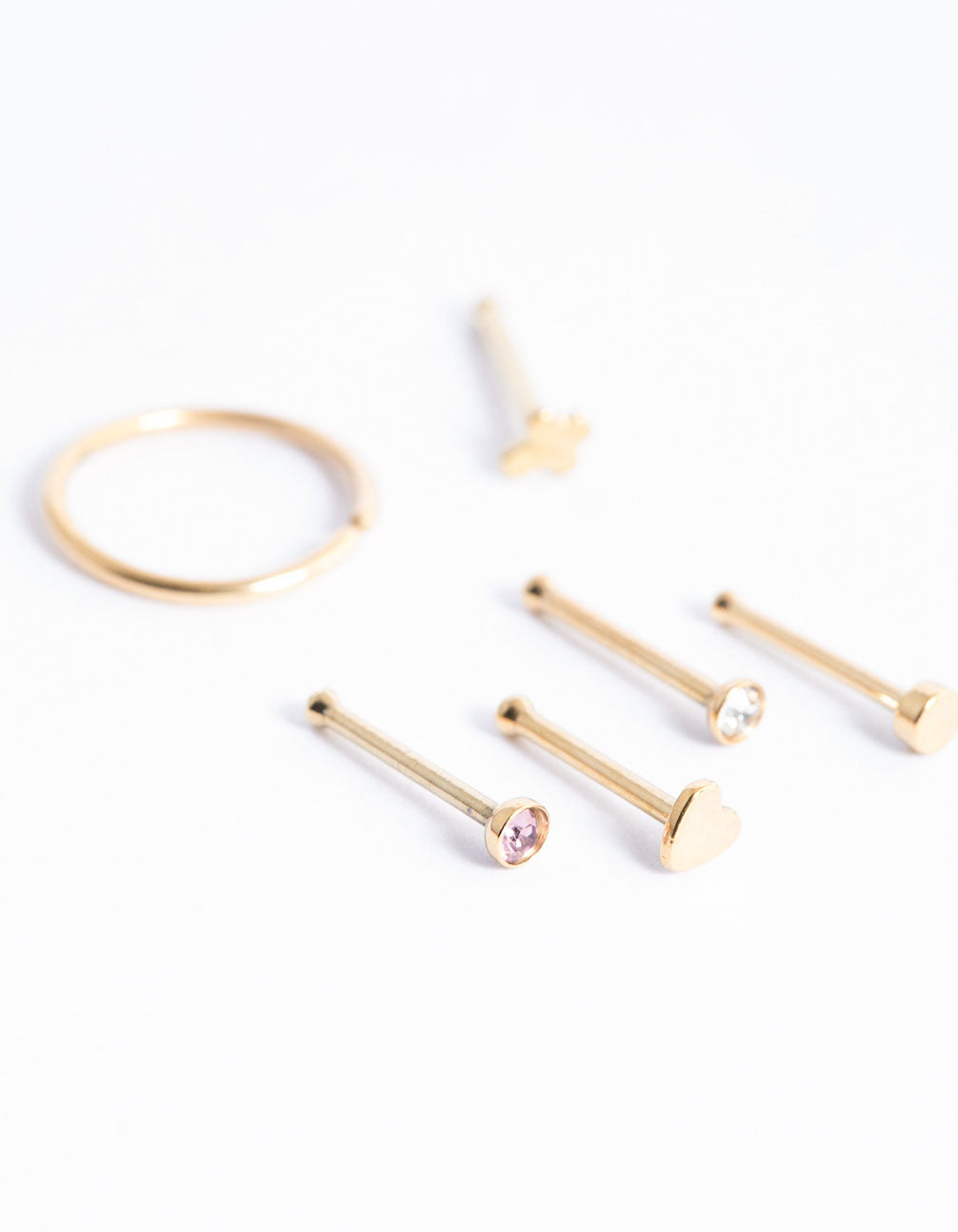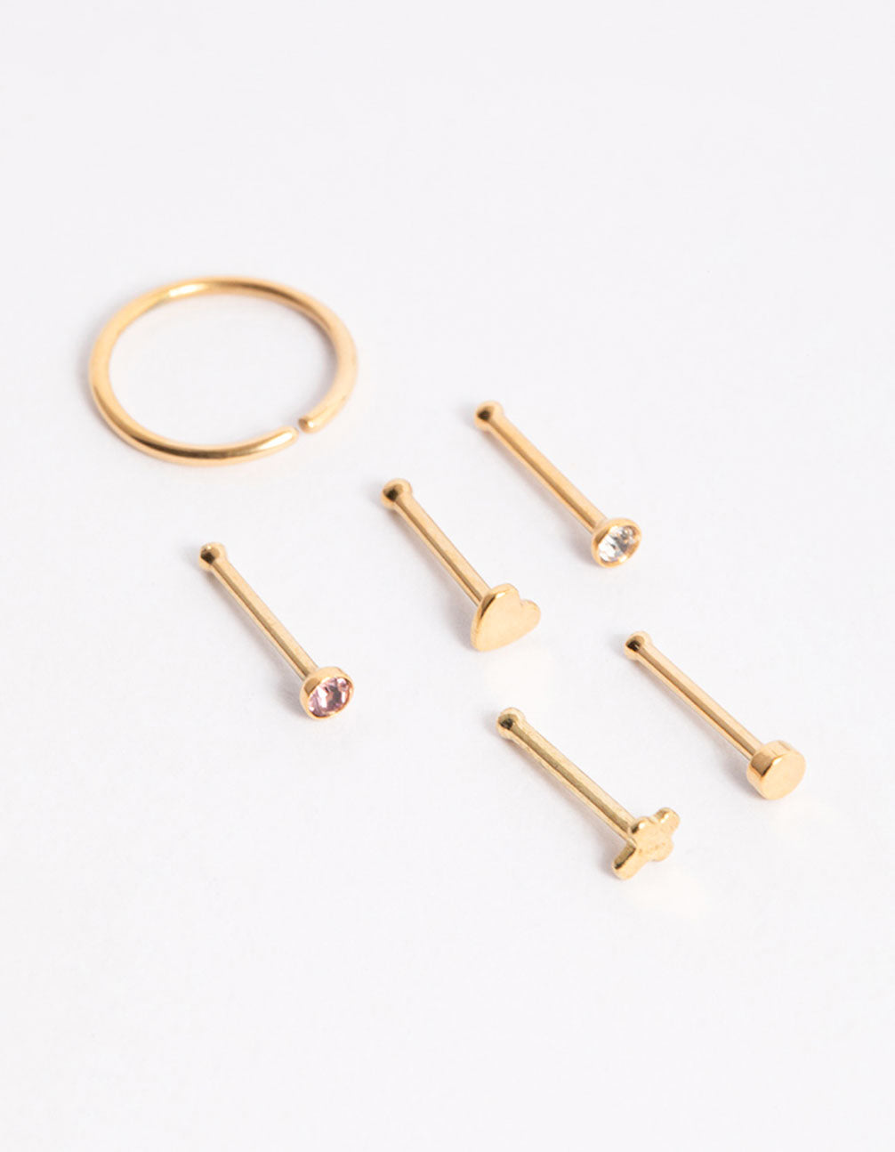 Gold Plated Surgical Steel Heart & Cross Nose Stud 6-Pack