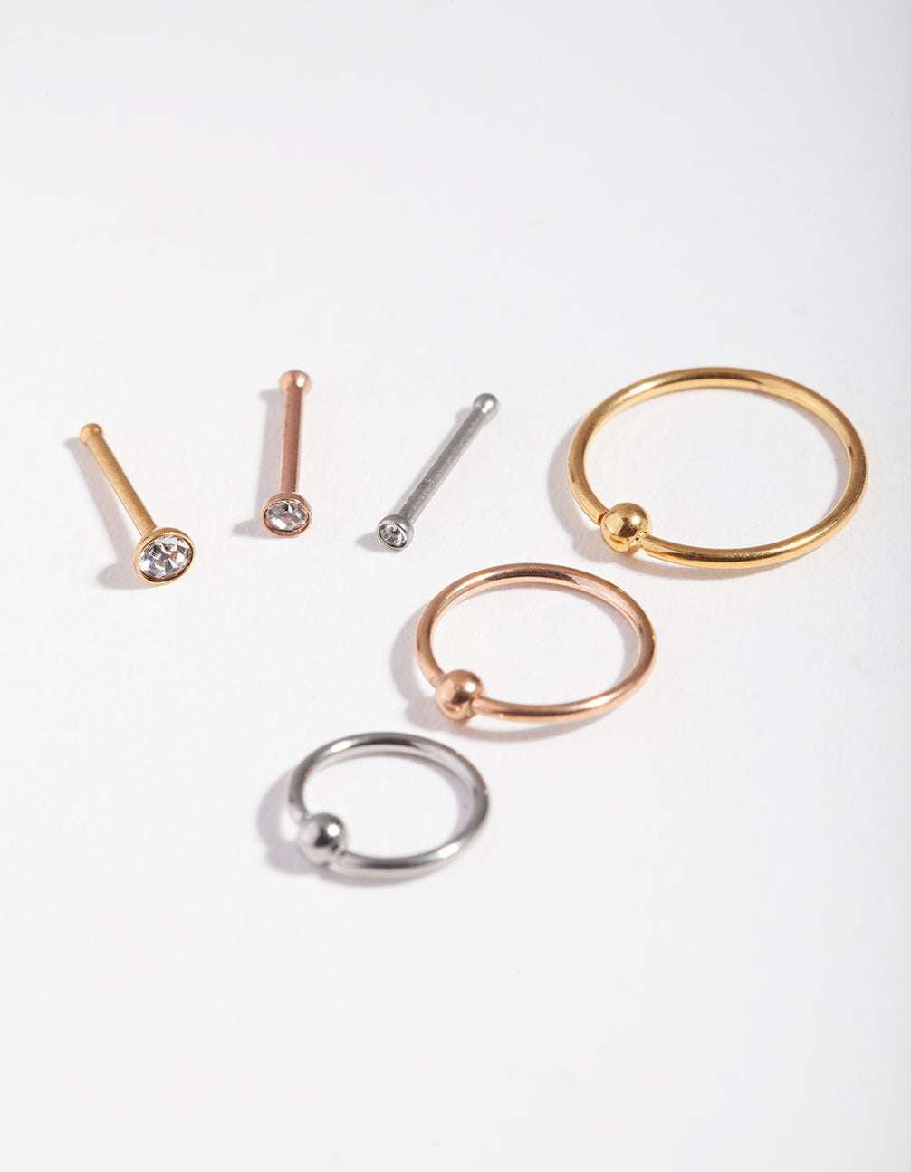 Round out your collection with a nose piercing pack! This set includes six piercings that boast gold and silver-tones with a graduating ball design. Lovisa body jewellery is made from surgical steel, so it's safe to wear and gentle enough for daily use. They have a gauge of 20 and are 0.8mm in length.