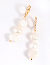 Gold Plated Cubic Zirconia & Freshwater Pearl Drop Earrings