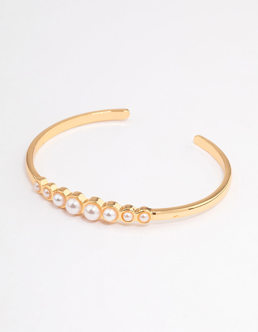 - Style this gold-plated, graduated cuff bangle with a simple pendant necklace for a signature look.
