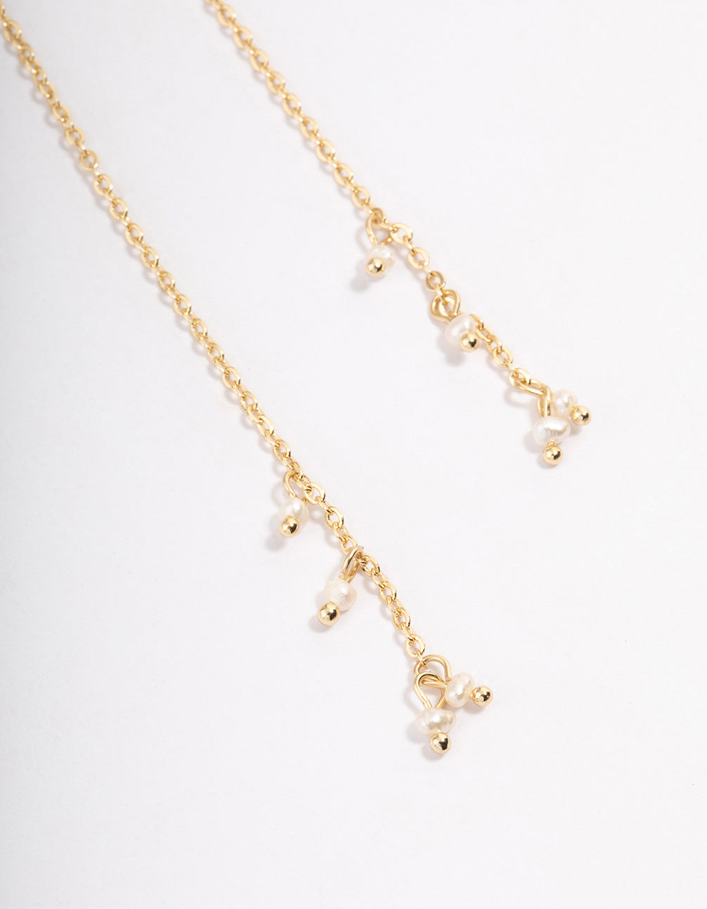 Gold Plated Mini Freshwater Pearl Chain Drop Earrings