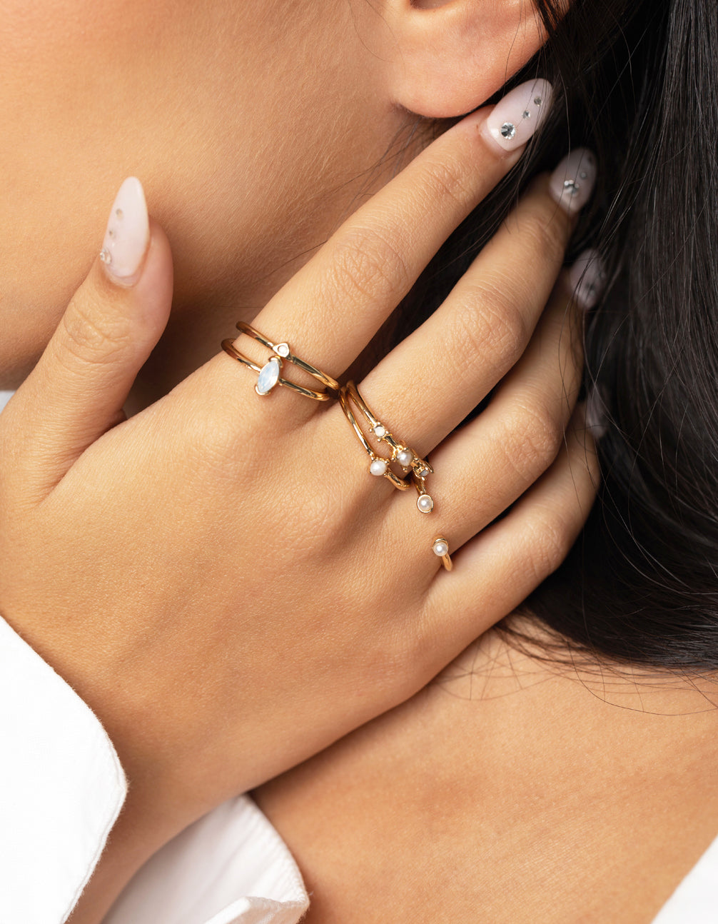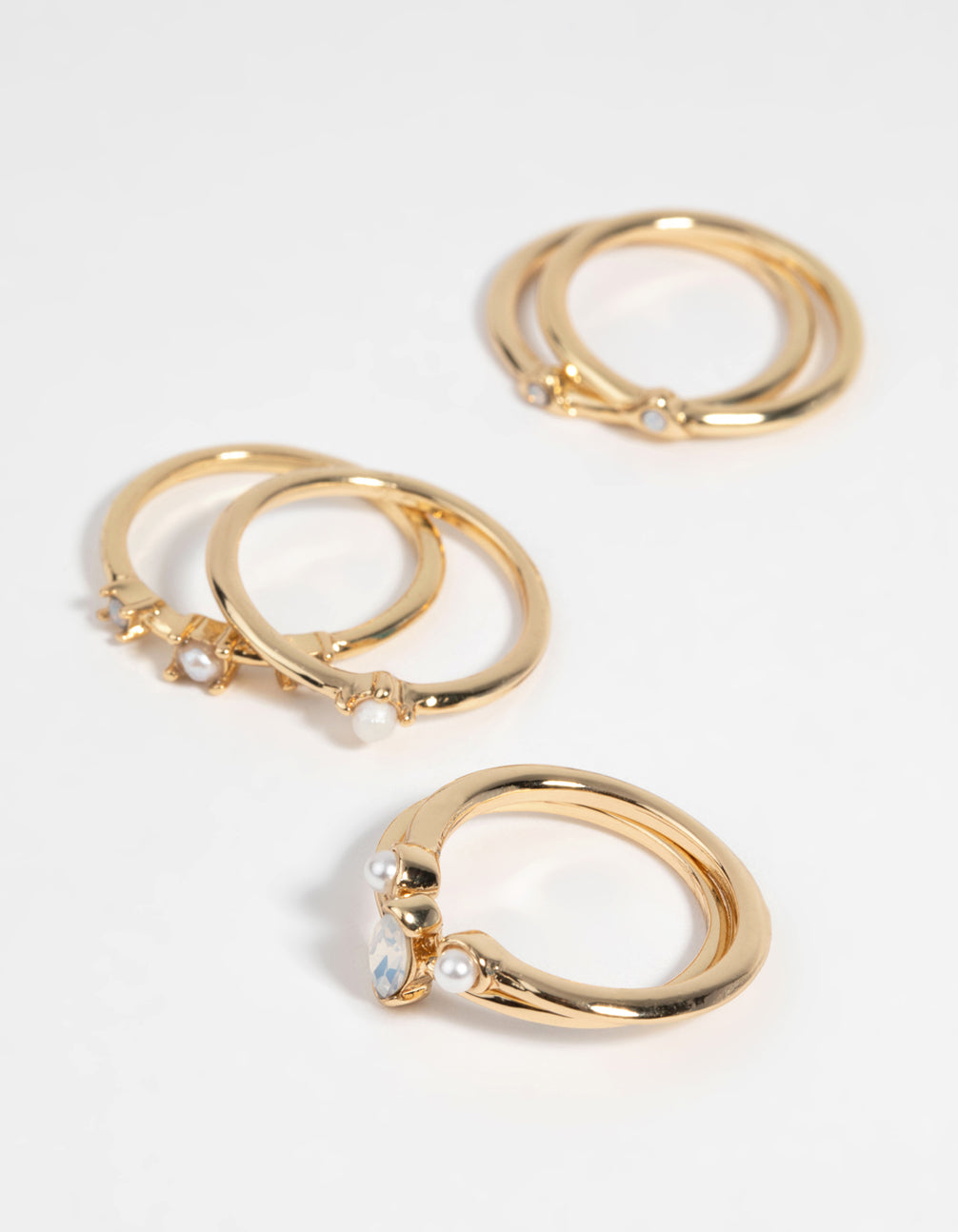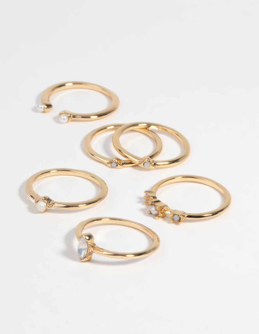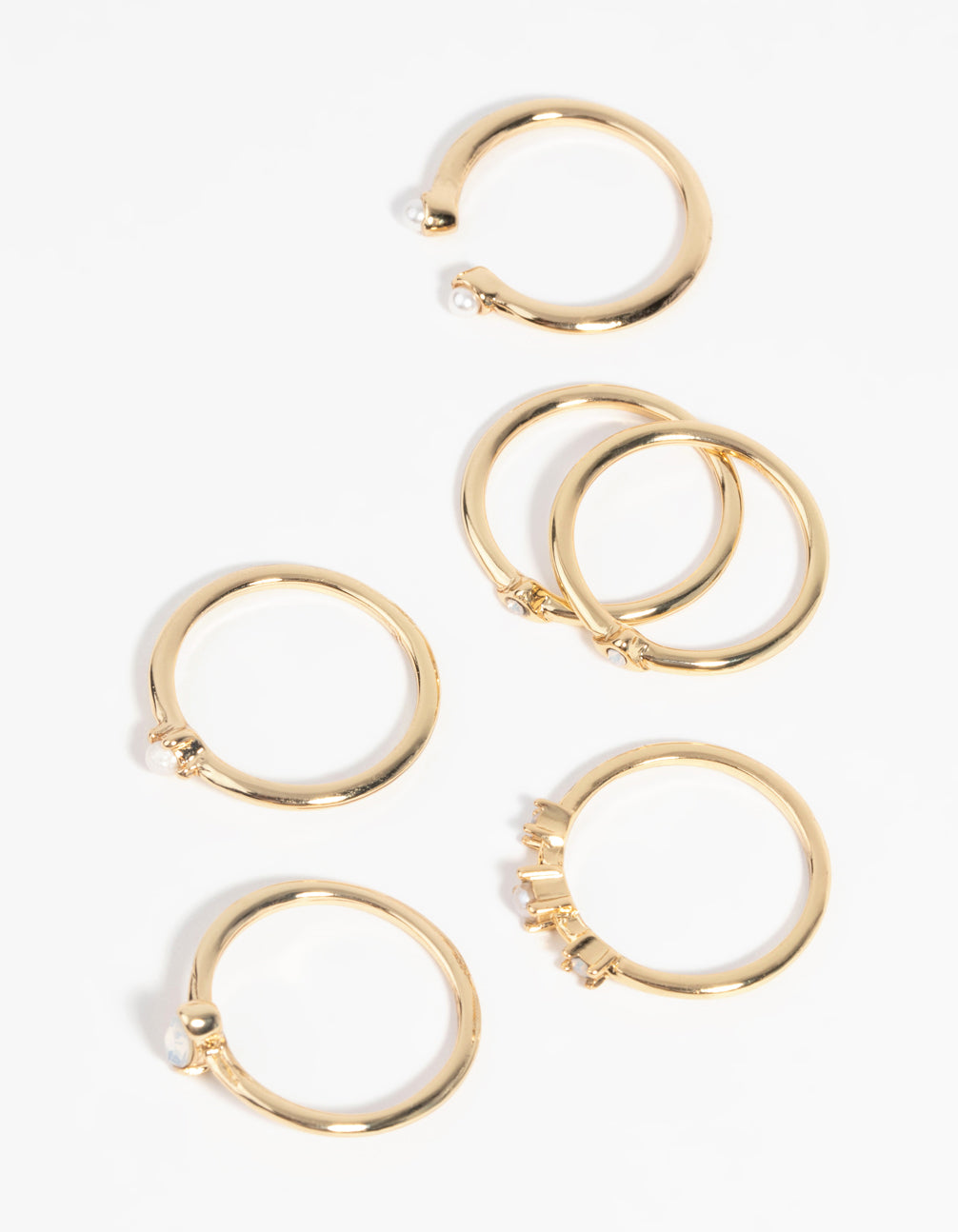 Gold Plated Ring Stack 6-Pack with Freshwater Pearls
