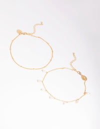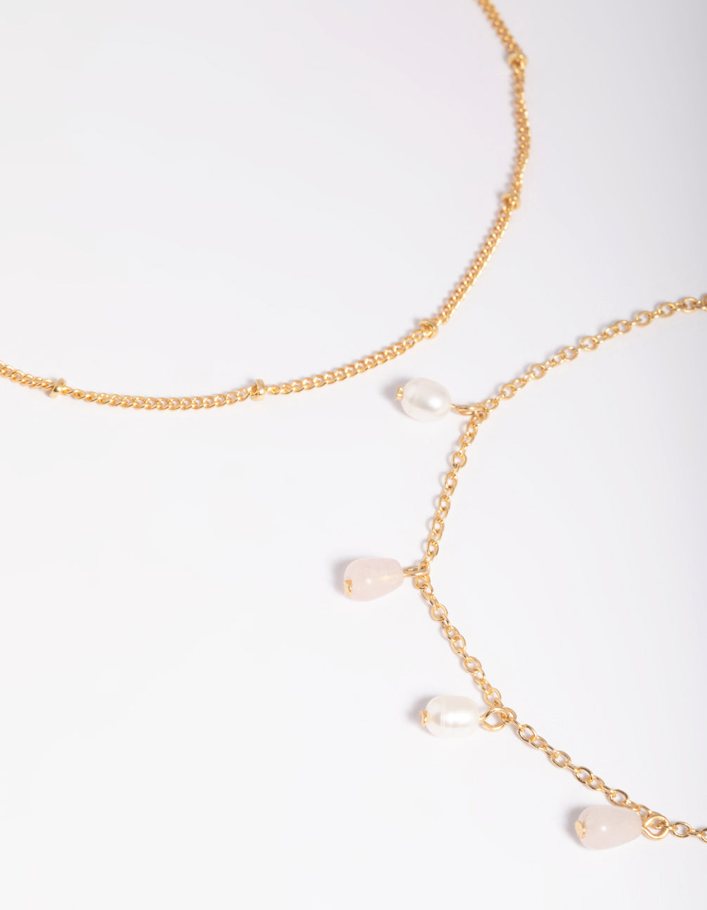 Gold Plated Rose Quartz & Freshwater Pearl Anklet