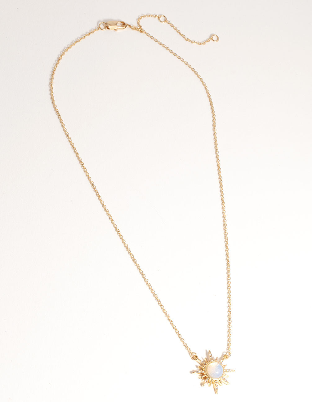 Raise your everyday neckwear game with fabulous gold-plated jewellery. This necklace features a sun charm that is embellished with a stunning semi-precious moonstone at its centre. The perfect piece for spoiling yourself with something luxe!