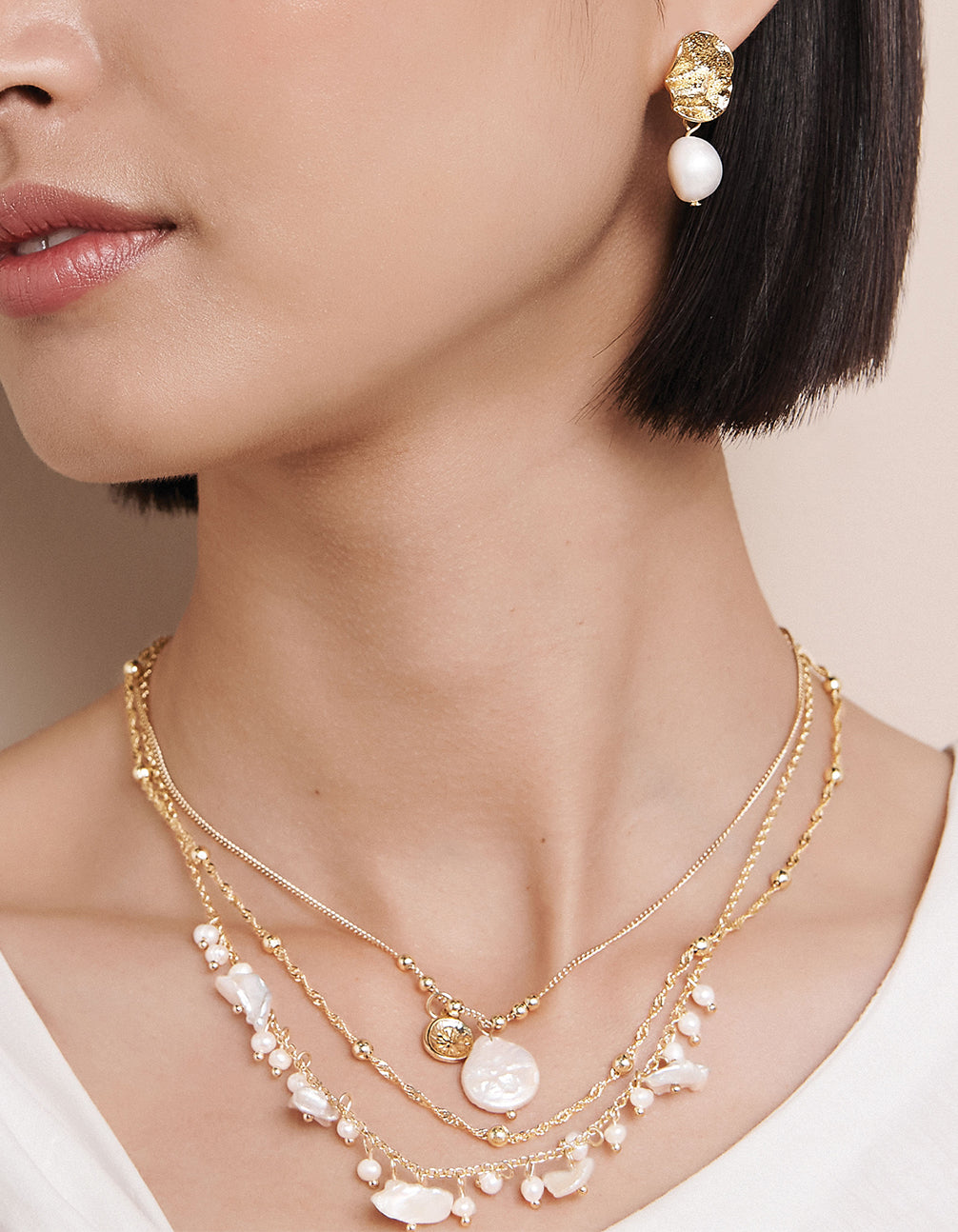 Add a touch of glamour to your ensemble with a beautiful real gold-plated necklace. This piece boasts layered gold-plated chains adorned with a freshwater pearl and hammered pendant. Style with your favourite gold-plated jewellery for maximum impact.