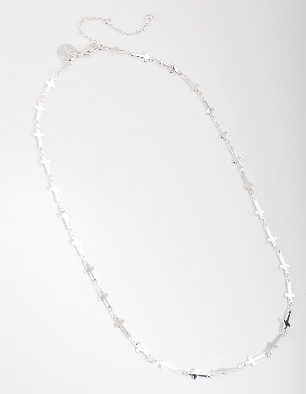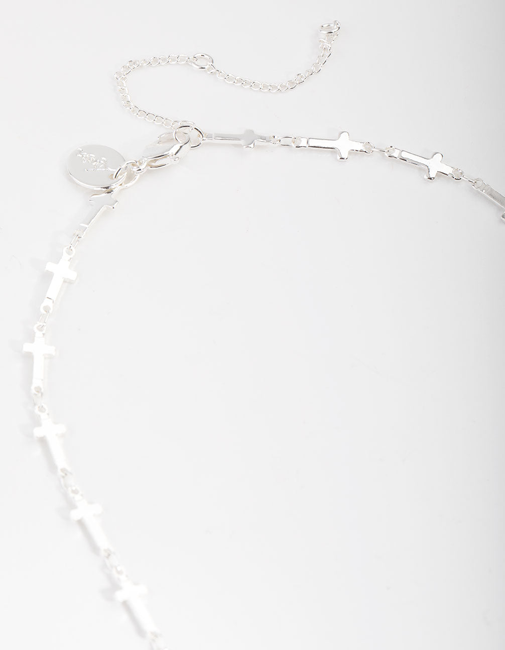 We can't get enough of cross necklaces! This stunning silver-plated piece features a short chain that is comprised of small linked crosses. Style with your favourite silver jewellery for maximum impact.