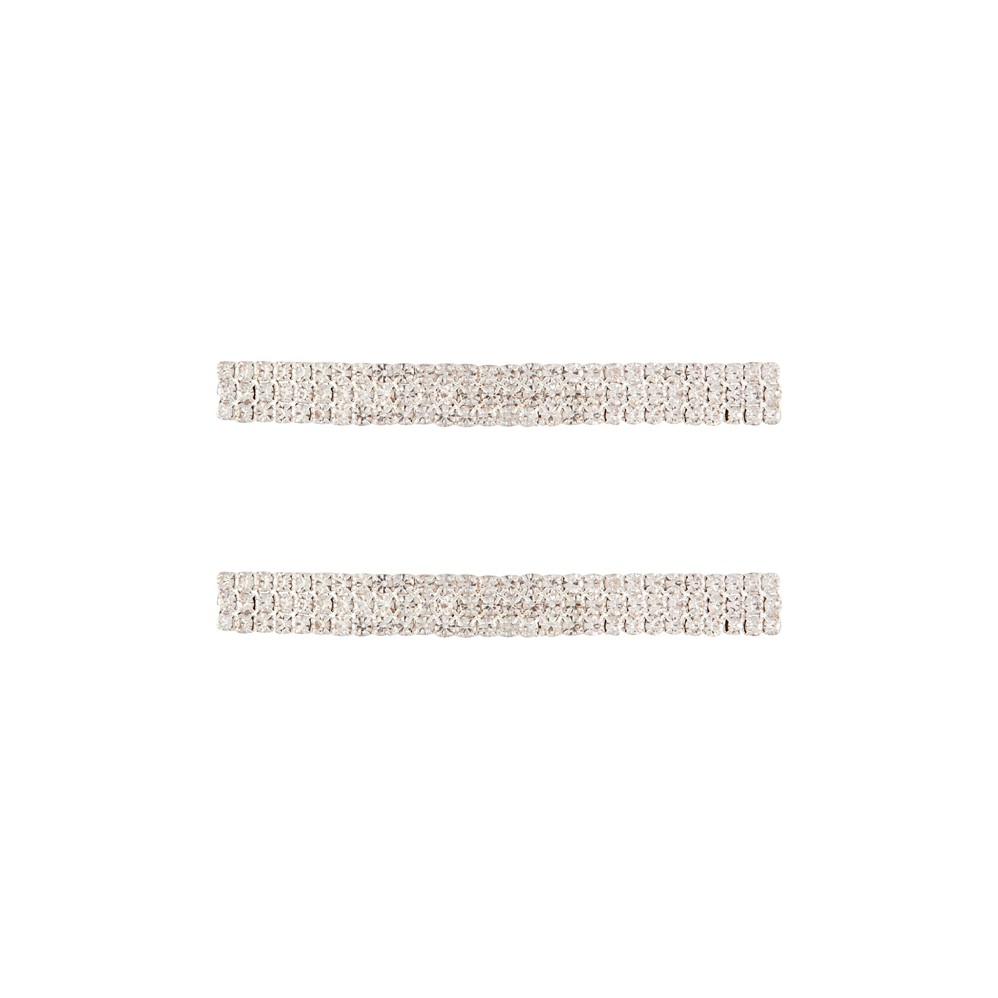 Diamante clips are perfect for those wanting to create a glamorous occasion look. This traditional barrette clip is glamorous in design, featuring a triple row of diamantes on a silver toned setting. Draw attention to your luscious locks with this hair clip pack.