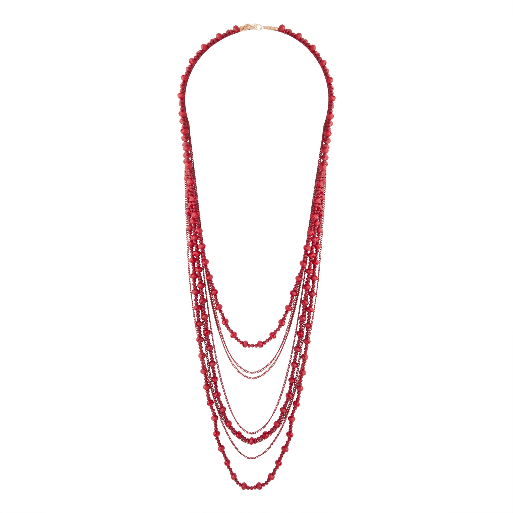 Make layering easy with this multi-row beaded necklace in red.