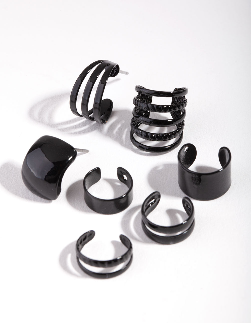 Easily nail the ear stack trend with a curated earring pack from Lovisa. This jewellery set comes with a black-toned setting and simple textured cuff band designs, all the edge you need to perfect your look.