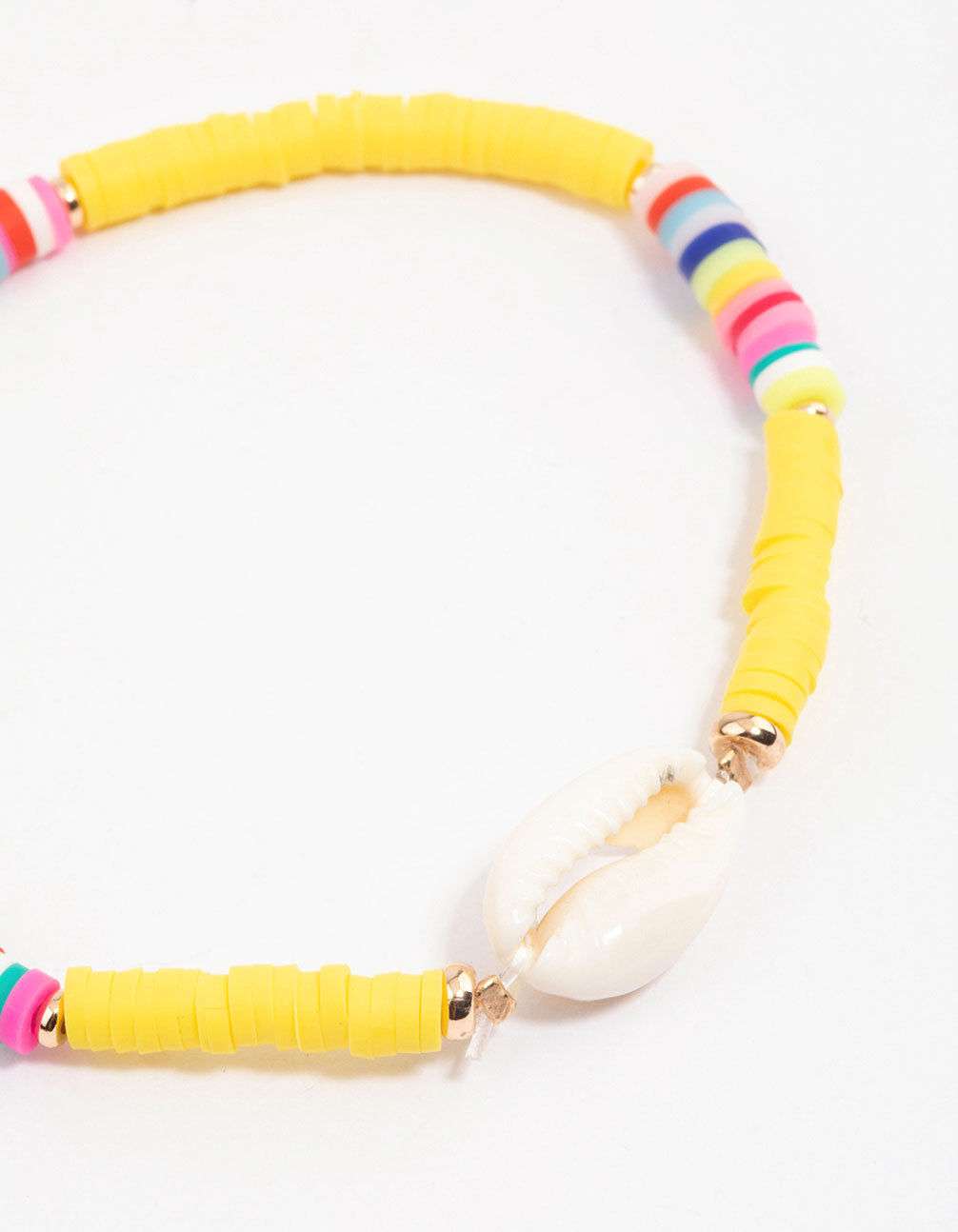 Style this Fabric Disc Beaded & Shell Pendant Bracelet with a pair of cowrie shell drop earrings for a coastal-inspired look.