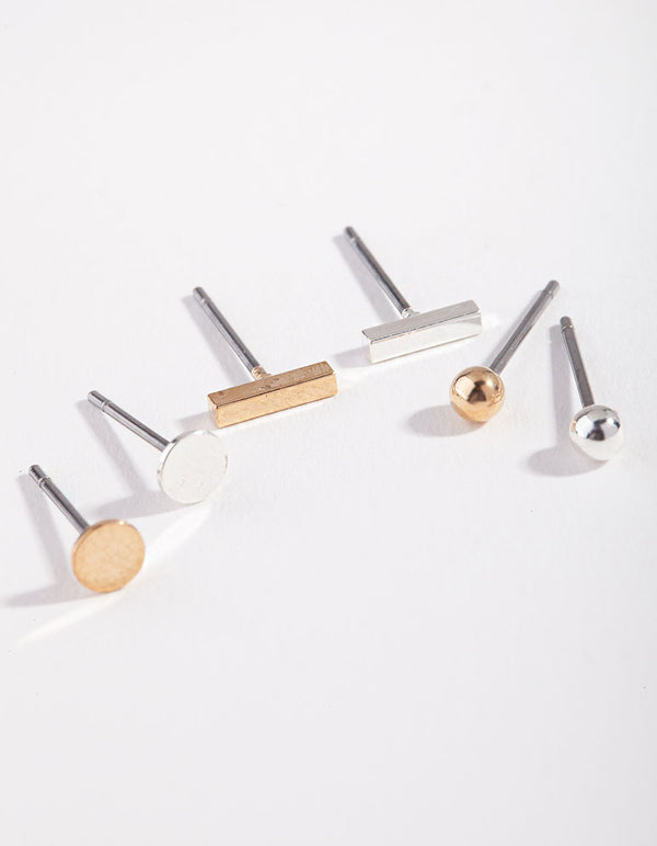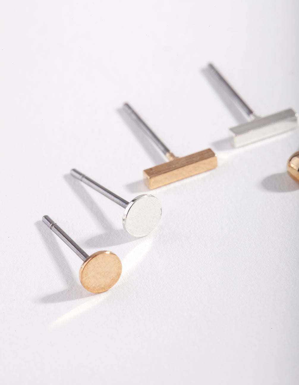 Layer up and create the perfect ear stack with a Lovisa micro earring stack pack! This pack features a variety of mini disc and stick stud earrings in a mixed metal tone.