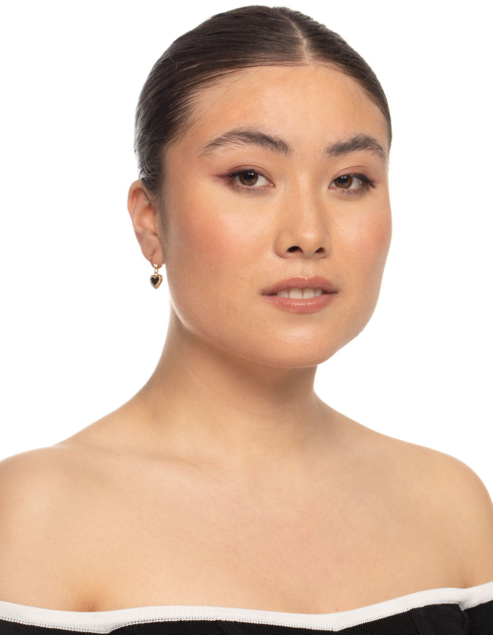 Black Enamel Heart Huggie Earrings