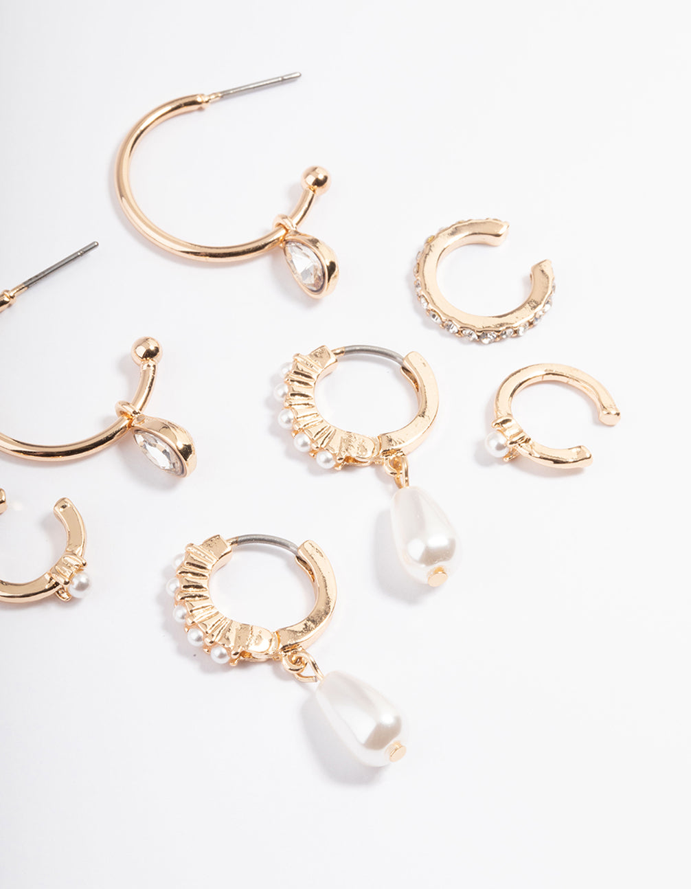 Gold Pearl Diamante Cuff & Hoop Earring Pack