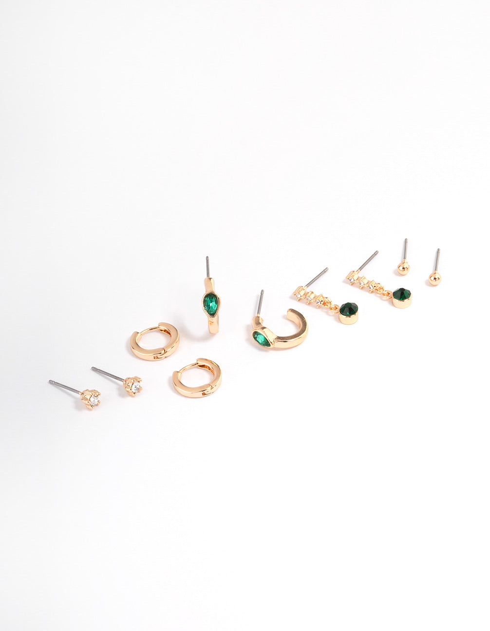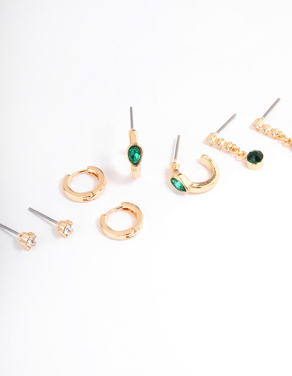 Style the latest jewellery trends with pieces from our Curated Collection! This earring pack features gold and green earrings, designed with varying shapes and features for a unique look.