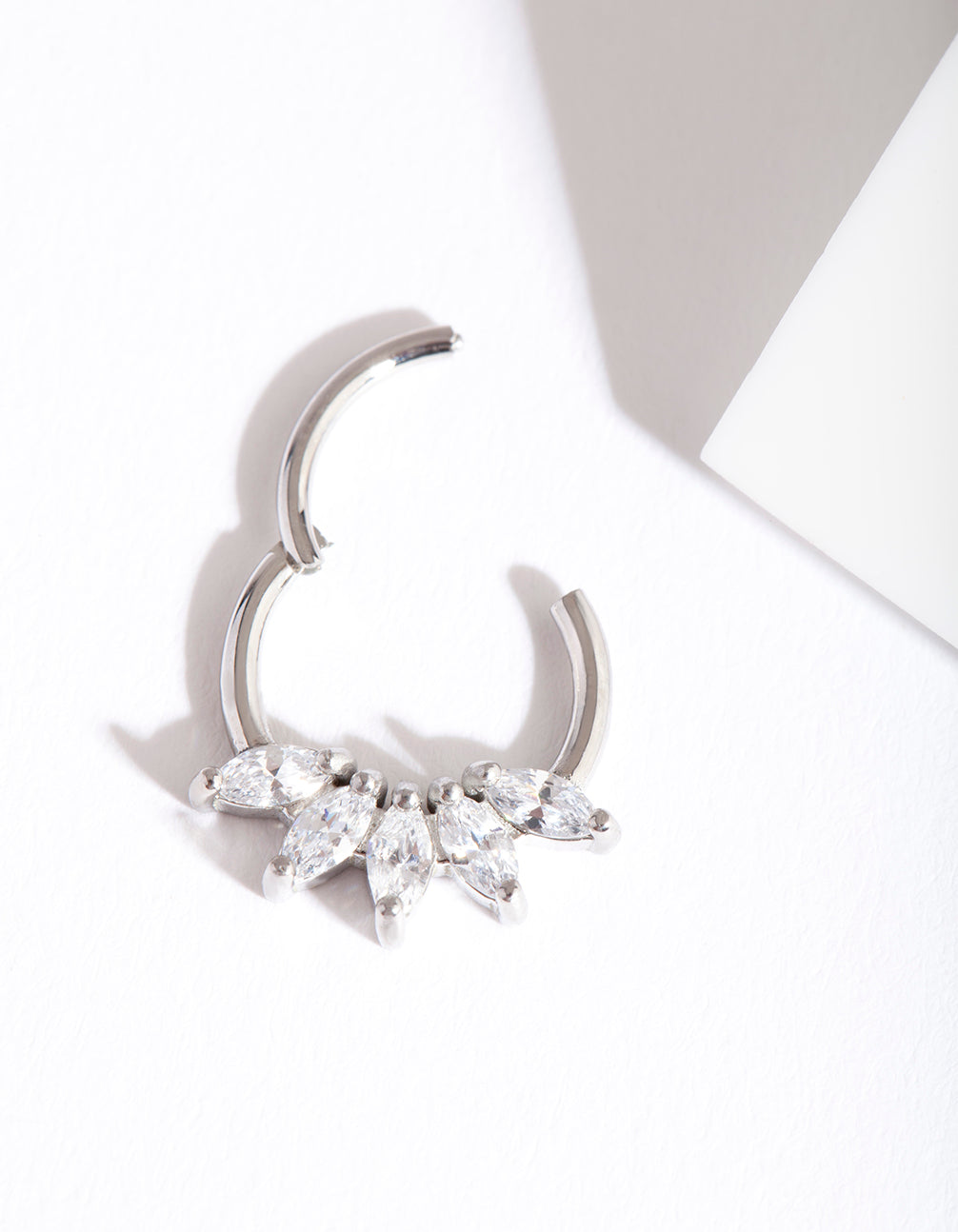 Surgical Steel Cubic Zirconia Marquise Clicker Earring