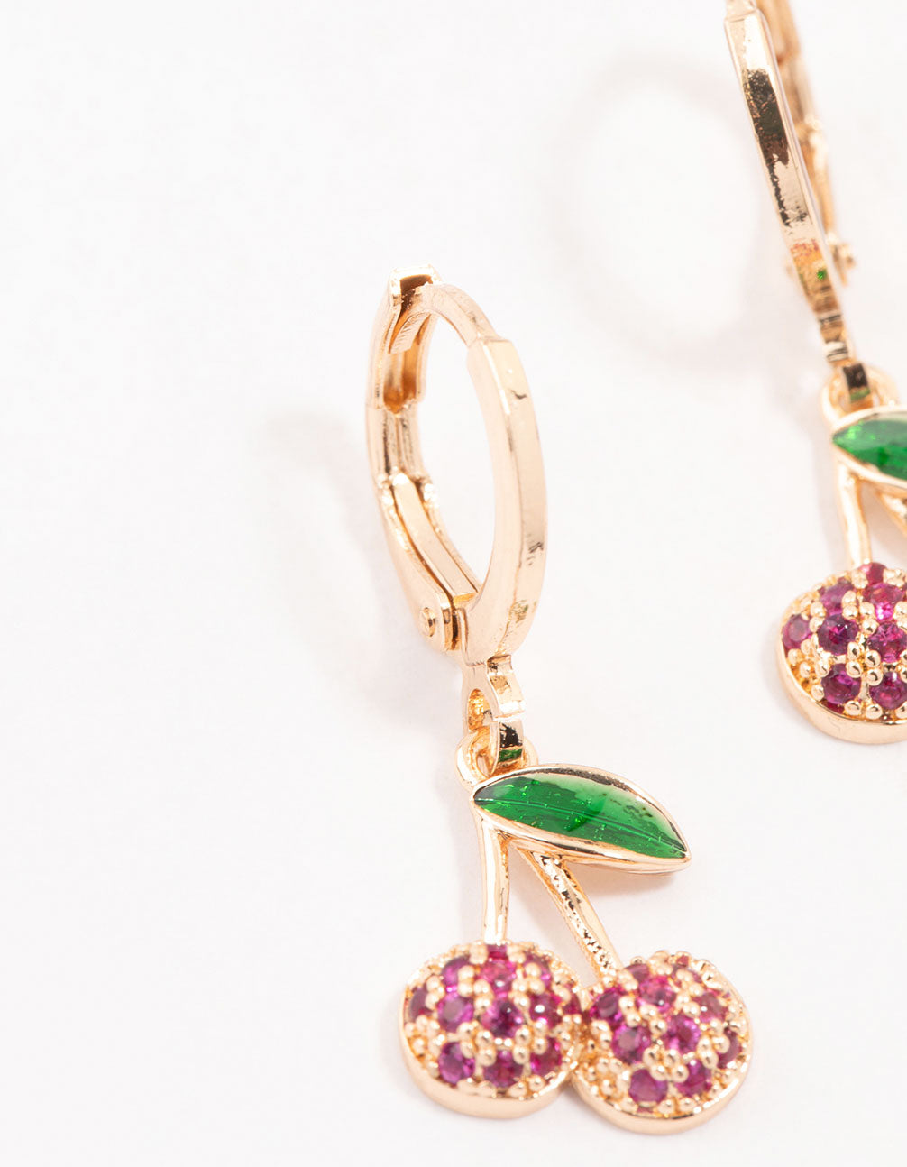 Cherry Gold Cubic Zirconia Huggie Earrings