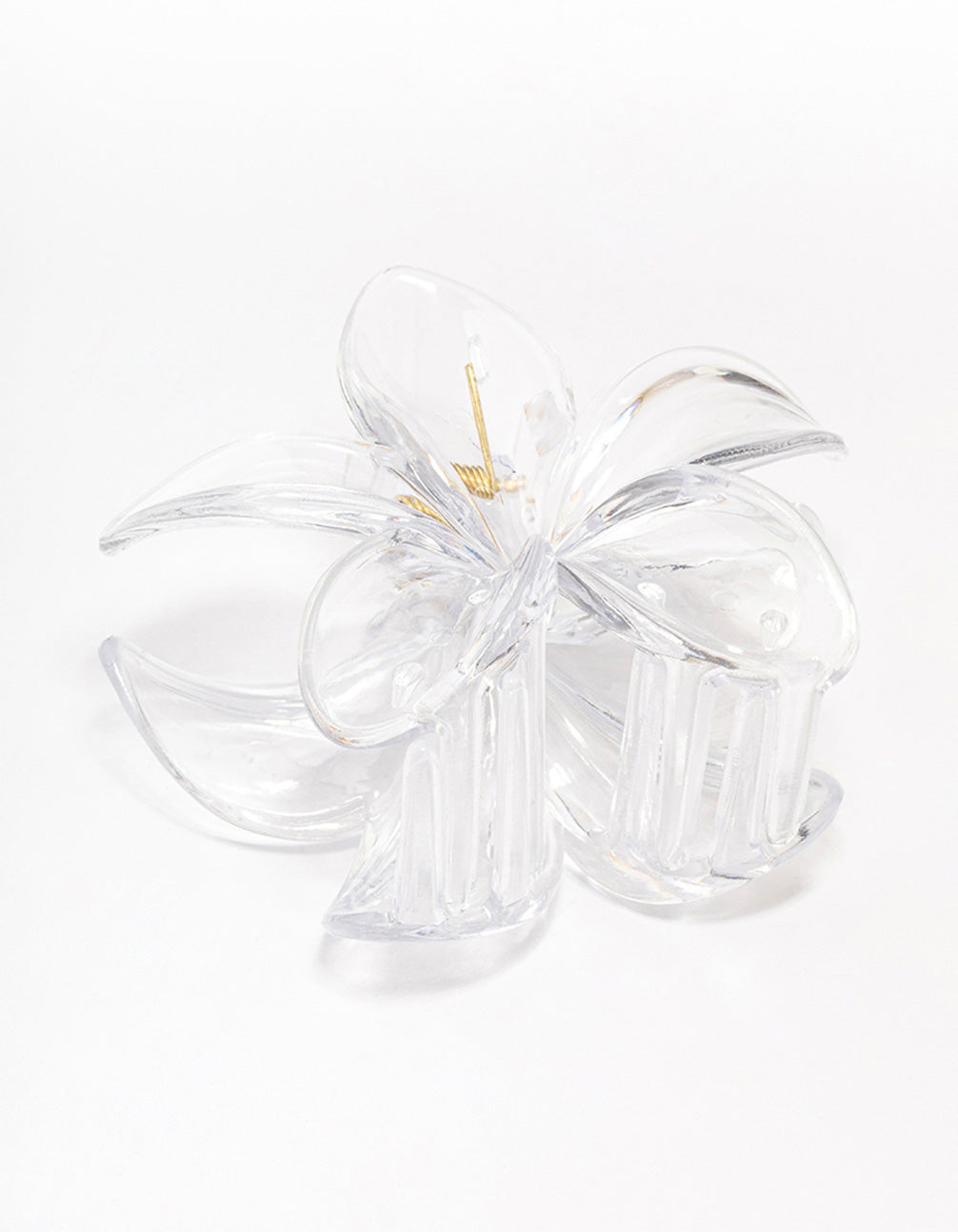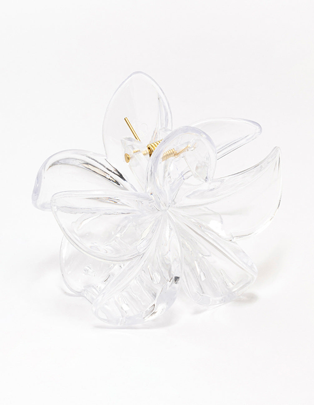 Accessorise like you're on vacation with this transparent hair claw. This claw clip features a tropical flower design, crafted with a clear acrylic material.