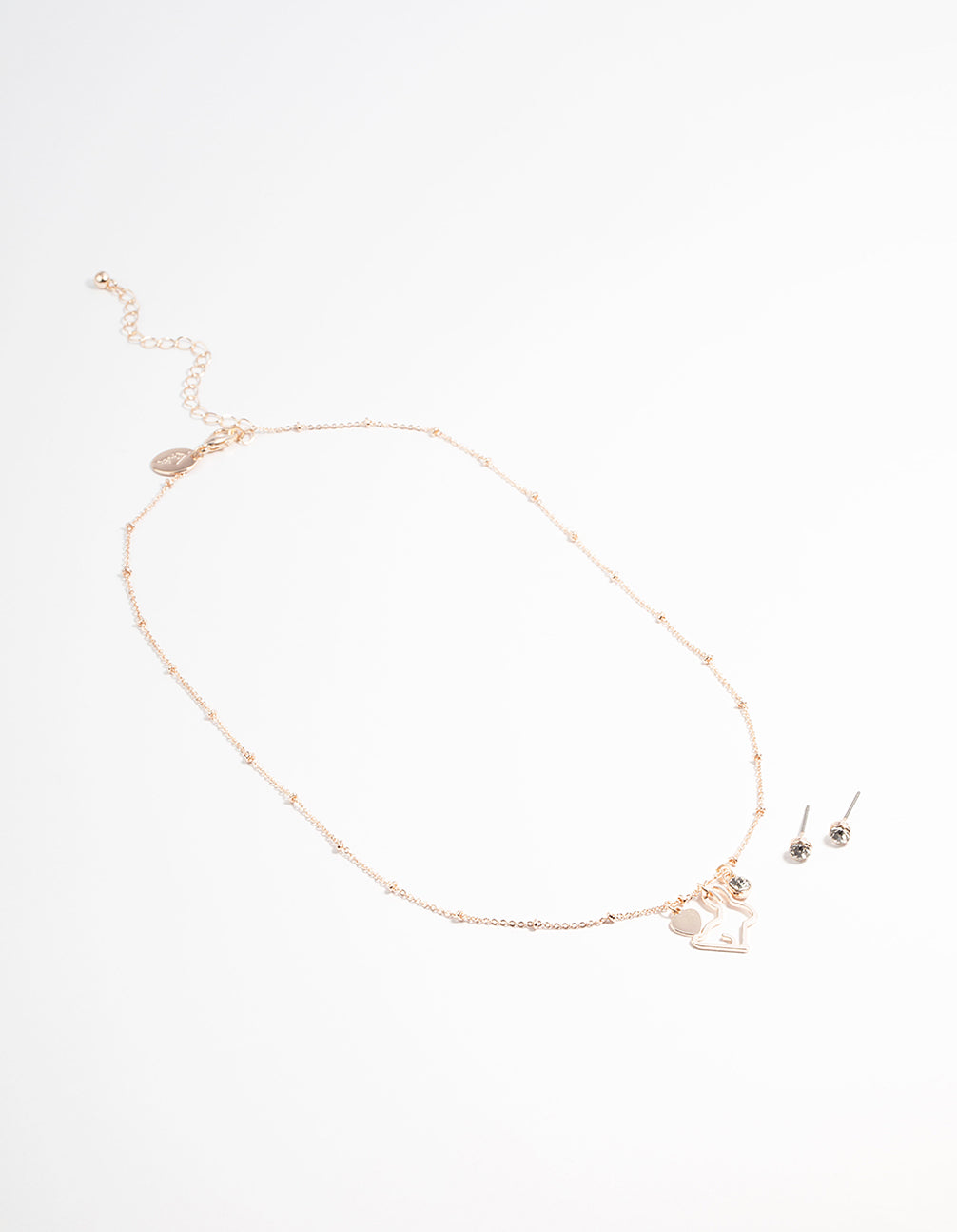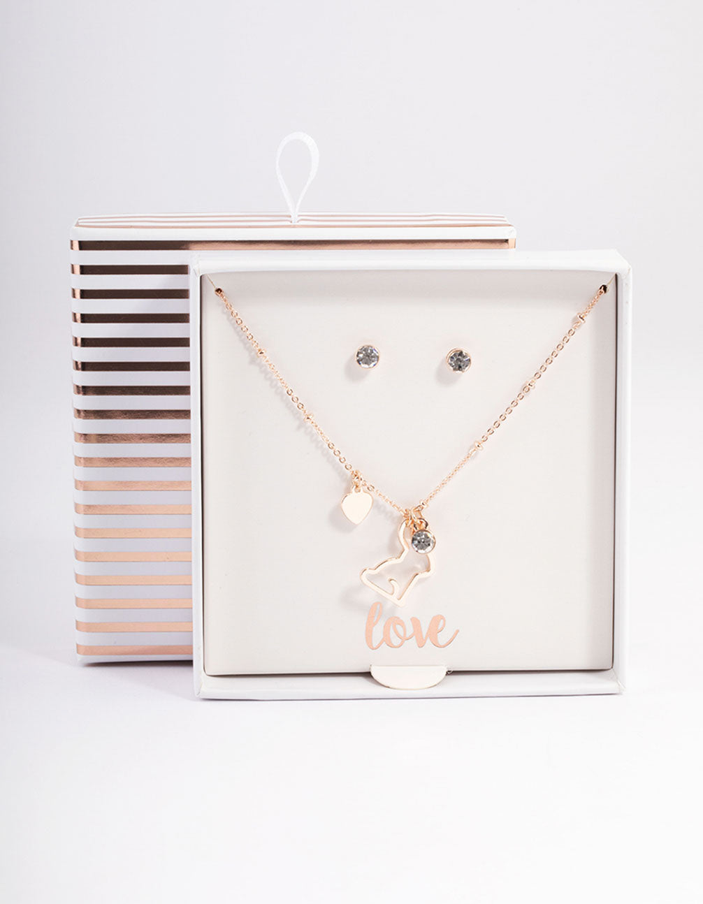 Rose Gold Bunny Diamante Necklace & Stud Earrings