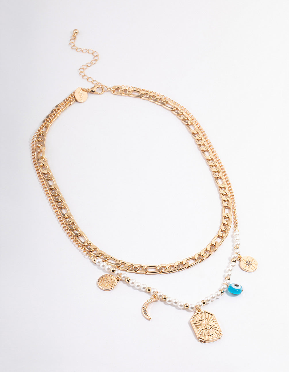Style this Gold Layered Evil Eye Beaded Necklace for the ultimate 'it-girl on vacation' look.