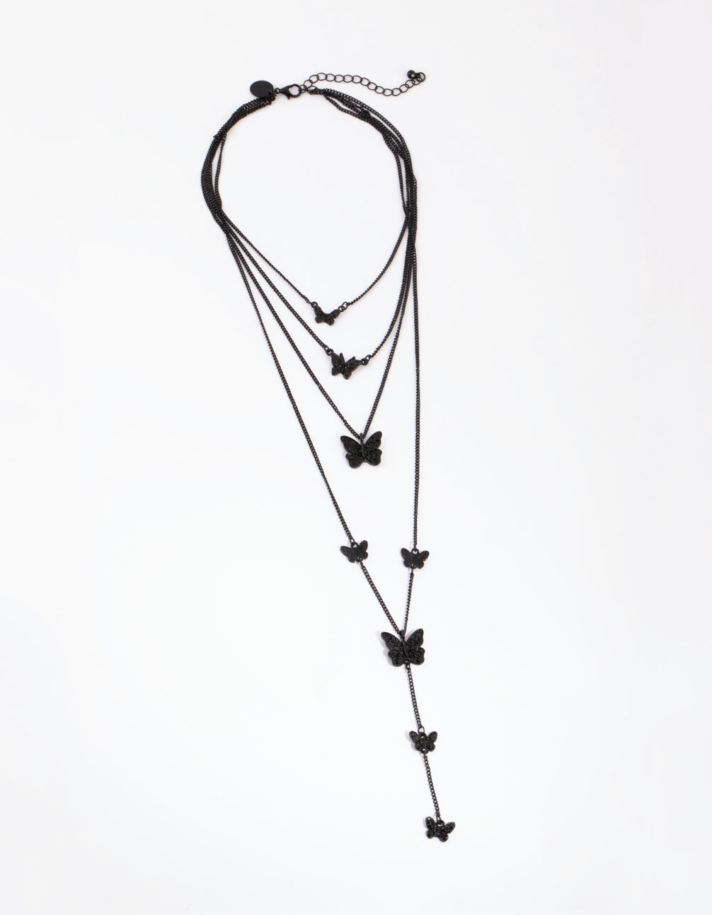 Matte Black Butterfly Layered Necklace