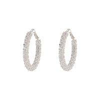 Crystal Encrusted Chunky Silver Hoop Earrings