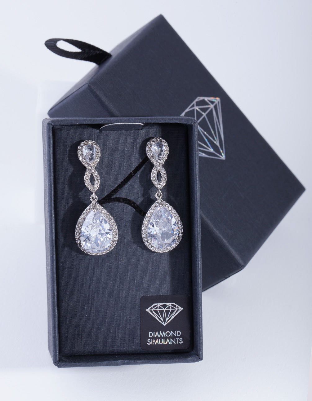 Made with diamond simulants - crystals that are cut to be indistinguishable to the naked eye from a true diamond.