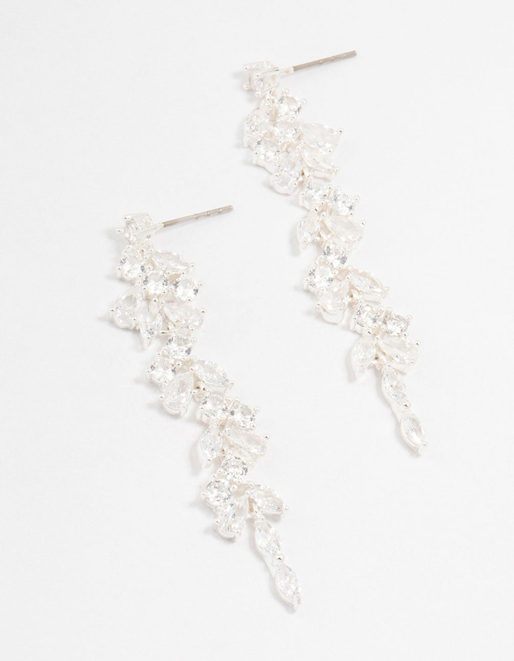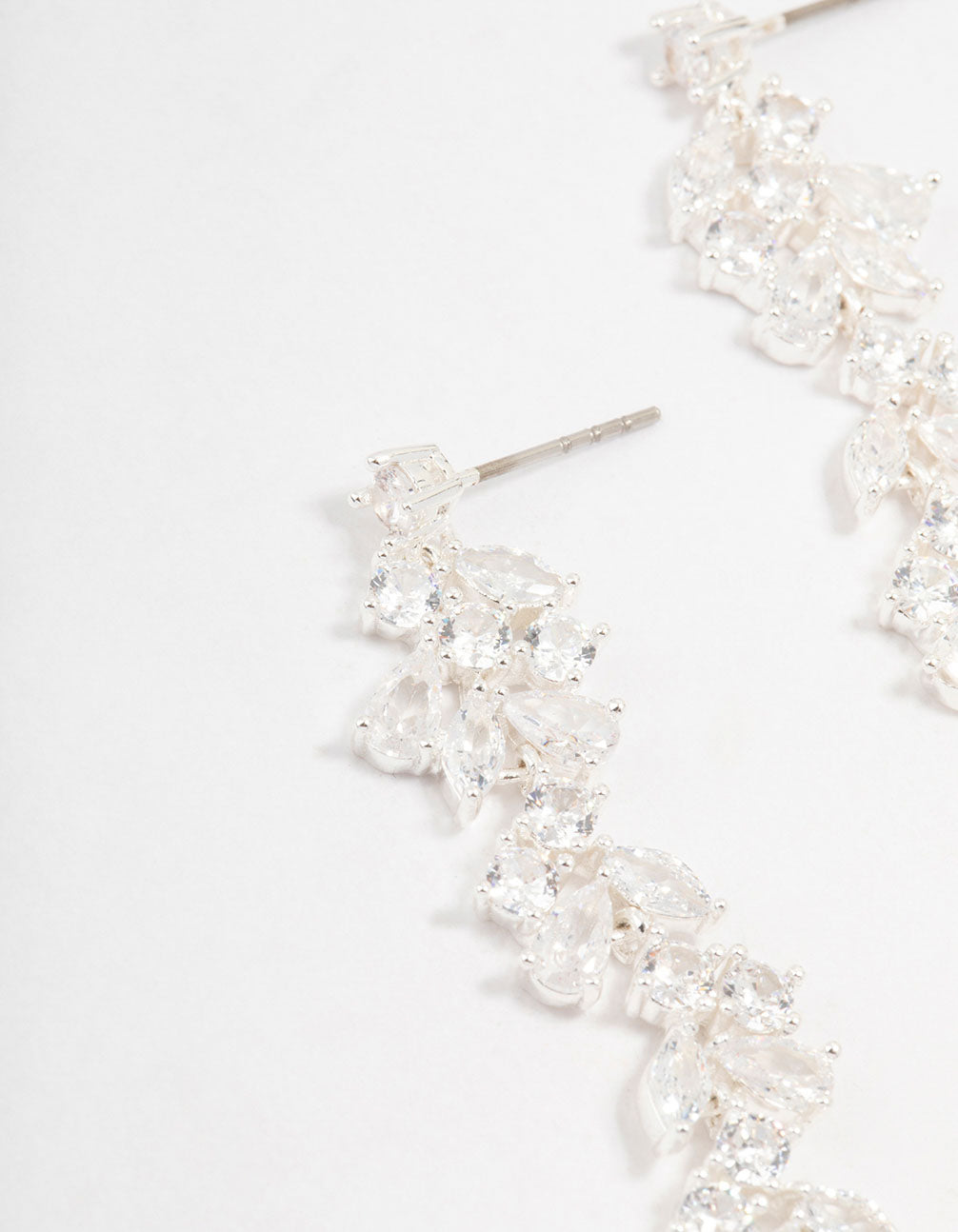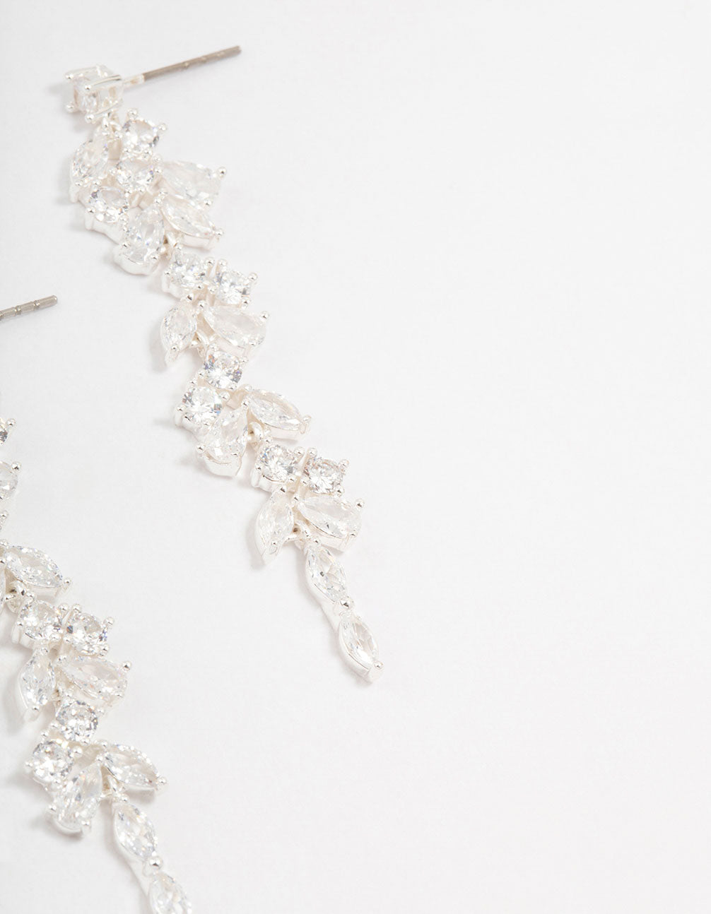 Cubic Zirconia Stone Silver Medium Drop Earrings
