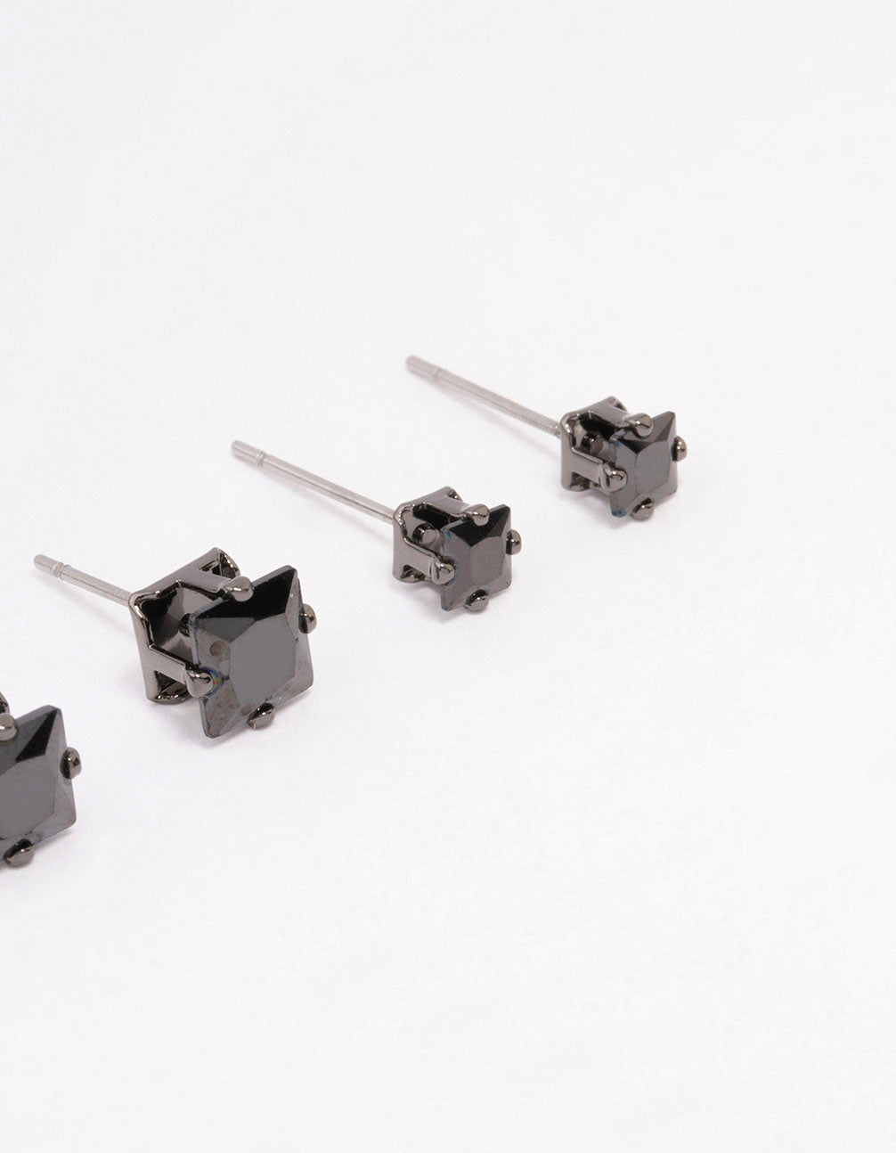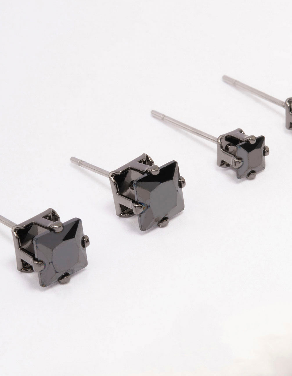 Gunmetal Cubic Zirconia Square Stud Earring Pack Gunmetal Cubic Zirconia Square Stud Earring Pack Gunmetal Cubic Zirconia Square Stud Earring Pack