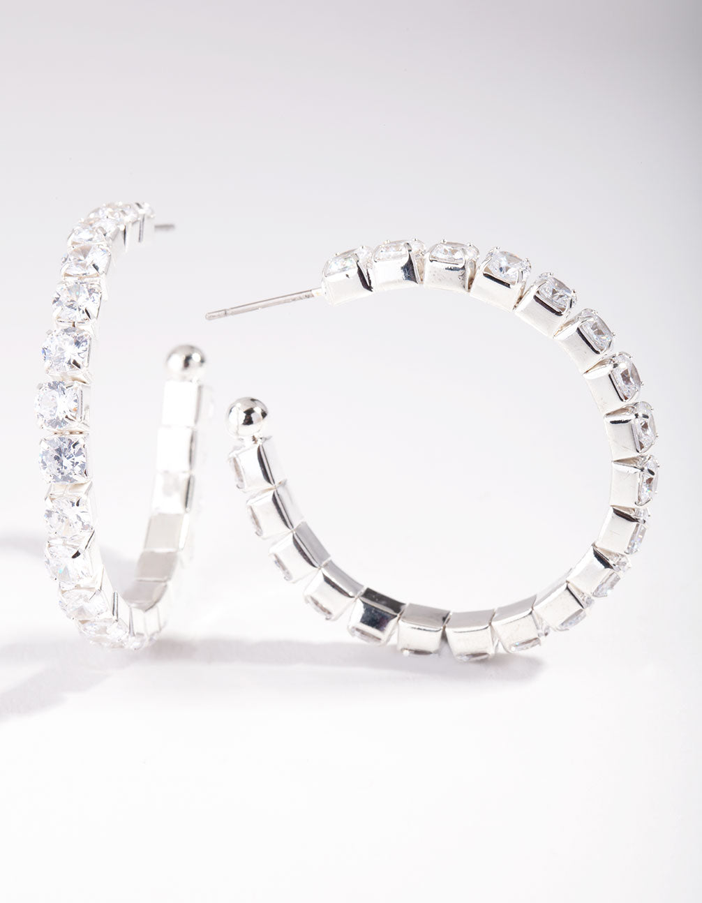 Make a sparkling statement with a pair of cubic zirconia hoop earrings. This style comes with a silver-toned setting and a medium-sized design perfect for taking your look from day to night.