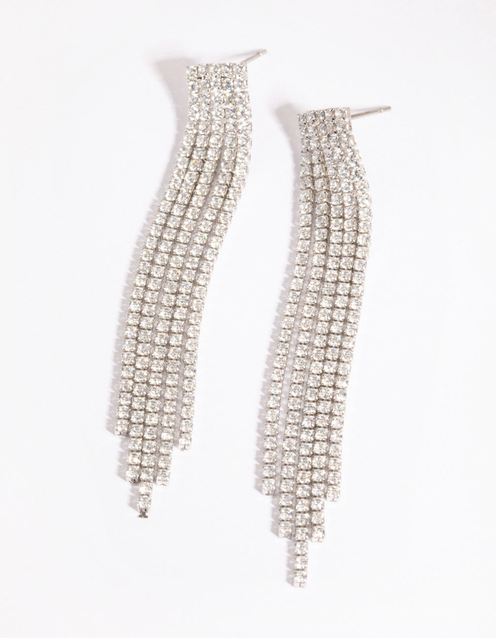 Silver Cubic Zirconia Cup Chain Fringe Drop Earrings